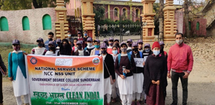 RAJOURI, Dec 20: Government Degree College (GDC) Sunderbani organized a week-long awareness programme including door-to-door campaign with special focus on rejuvenation of rivers and water bodies with involvement of local community along with NSS & NCC volunteers. The programme was undertaken as a part of the Clean India Campaign in commemoration with Azadi Ka Amrit Mahotsav. The students of college undertook an extensive one-week awareness programme which is considered to be a cost-effective measure to combat the rising pollution in the rivers and water bodies. NSS & NCC volunteers of the college raised public awareness about water conservation as it is need of hour to increase peoples' knowledge of water resources, water use, and the need to conserve water. As a part of this awareness programme around 40 NSS & NCC Volunteers of the College participated in the sanitation drive wherein they visited nearby villages and have interaction with masses regarding conservation of water bodies, they also visited water bodies at a distance of 3.4 kms from college namely Maijra-di-Bawli in Naddani village, another Bawli in Village Kund and collected waste and rubbish in and around the water bodies and also visited pond in shivkashi at Dova Village. Students made people aware with posters and rally. In the rally slogan regarding conservation of water bodeis were raised by students. The program was organized by Prof. Sham Lal, NSS Program Office and Mr. Ravi Kumar, CTO NCC Unit. The program was made successful with the efforts of Prof. Sheraz kousser Co-Convenor NSS, Prof. Beant Singh, Dr Shezad Ahmed and Prof Sandeep Kumar Member NSS, Prof. Rabinder Kumar and Prof. Kuldeep Kumar. Dr. Vandana Gupta Principal of GDC Sunderbani appreciated the NSS and NCC Unit of the college for volunteering in community services. |