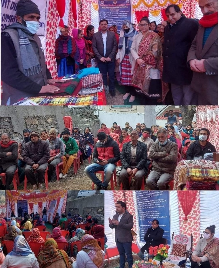 | Handloom Department organises awareness cum exhibition camp at Senai, Bhala | | | Early Times Report DODA, Dec 21: Office of the Assistant Director, Handloom Development, Doda today organised One Day Exhibition Cum Awareness Camp here at village Senai, Bhalla. Vice Chairperson, District Development Council, Doda, Sangeeta Bhagat was the chief guest, Sarpanch Khellani Top, Kashi Nath was guest of honour. Artisans and weavers, trainees of Handloom training centres, a large number of people from Block Bhalla and staff of Handloom and Handicrafts department participated in the said camp. Assistant Director, Handicrafts and Handloom, Doda, Satish Rana presided over the function. He encouraged the people to take up weaving as a profession and avail the benefits of the departmental schemes. He apprised participants about the training programme and schemes run by the Directorate of Handicrafts and Handloom, Jammu for the welfare of artisans and weavers in the district. He said that during the current financial year of 2021-22 Rs. 5.00 lacs as bank interest subsidy has been disbursed till date. He asked the weavers and artisans to avail the benefits of the schemes such as Pradhan Mantri Weavers Mudra scheme, Credit Card scheme, Scholarship to girls child of weavers under Education Scheme, Loan for purchase/renovation/ modernization of looms, Share capital loan, Formation of cooperative societies, Skill Development Training in Weaving to the unemployed youths and payment of stipend at the rate of Rs1000 and 1500 per month for elementary and advanced courses respectively etc. The Vice Chairperson, District Development Council, Doda apprised people about the benefits of all schemes of Department of Handicrafts and Handloom. She advised the weavers and artisans to adopt new technology and develop new designs by replacing the old type of pit looms to modern fly shuttle looms so that the quality of products and their earning is improved. During the camp diploma/certificates were distributed among the pass out trainees and three officials of Handloom Doda were awarded with certificates of appreciation for their services. The people of the area requested the department for organizing more such camps in far off and remote areas. The program concluded with a vote of thanks and refreshment for participants.