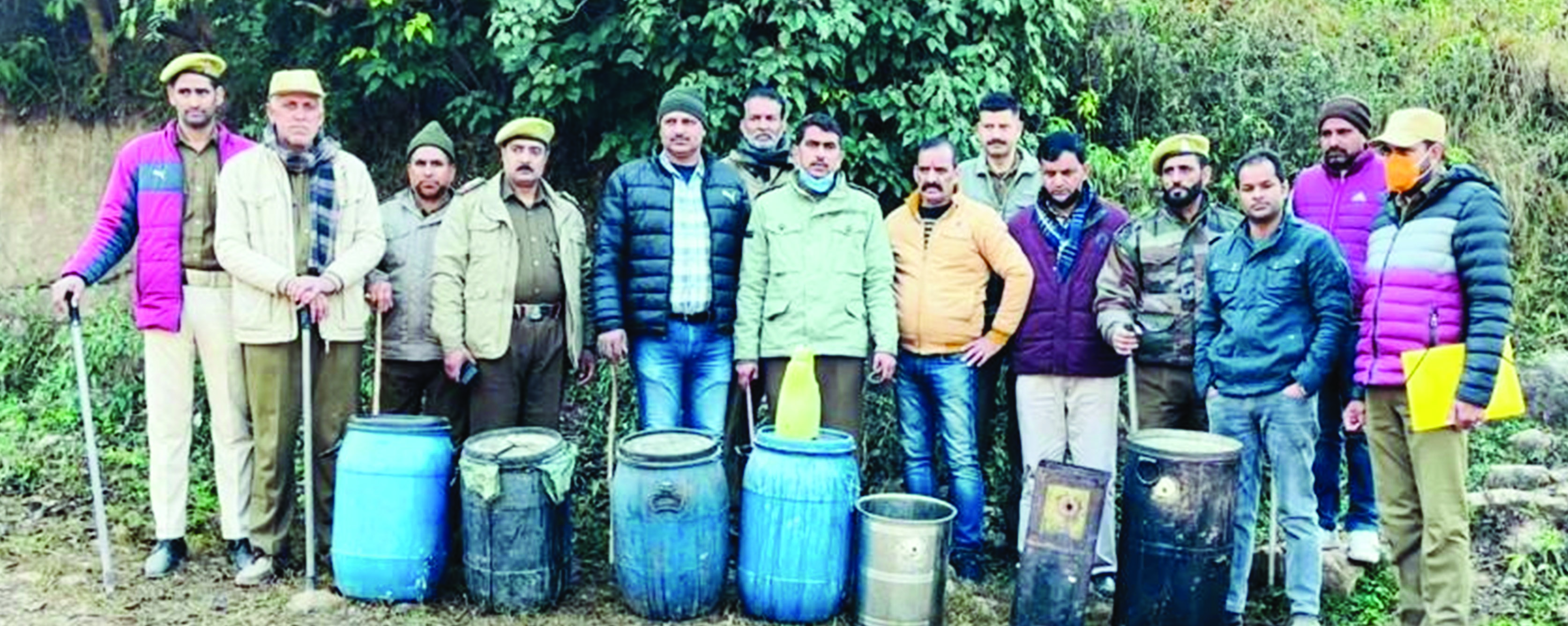 RAJOURI, Dec 22: Excise department destroyed four working stills, five litres of illicit liquor and 250 kilograms of Lahan during different raids carried out to arrest the menace of illicit distillation and sale of illicit liquor in Excise Range Rajouri-Poonch On the directions of Excise Commissioner, Kishore Singh Chib and supervision of Deputy Excise Commissioner (Executive) Jammu Kusum Sharma, a team of excise eradication and enforcement wing led by Narinder Singh and excise team Rajouri led by Mohammad Arif along with inspector Mohammad Farooq raided Devak Athal, Batal, Makool Nallah, Nether, Patah and Laam areas of Rajouri to arrest the menace of illicit distillation of liquor and illicit sale of IMFL. In the process five litres of illicit liquor were recovered from the possession of three accused Jarnail Singh, Surinder Singh and Ranjut Singh. The raiding team also recovered three working stills, 250 kilograms of Lahan, raw material of illicit liquor, which is highly hazardous and injurious to health from state land and later destroyed on spot.