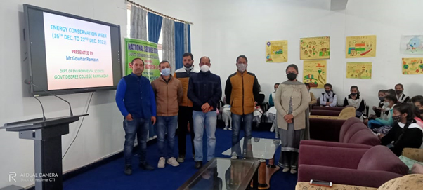 | GDC Ramnagar organizes lecture on Energy Conservation | | | Early Times Report RAMNAGAR, Dec 22: To observe and celebrate National Energy Conservation Week, NSS Unit Of Govt Degree college Ramnagar organized lecture on energy conservation with the theme "Save energy Save Earth" today as a part of Azadi Ka Amrit Mahotsav. The event was organized under the able patronship of Dr Udhey Bhanu, Principal GDC Ramnagar. The resource person of the programme was Gowhar Ramzan, HOD Environmental Sciences, GDC Ramnagar. The theme of Energy Conservation week 2021 given by Energy Efficiency Bureau (BEE) is Azadi Ka Amrit Mahotsav: Energy Efficient India. Ramzan, the resource person demonstrated the students how energy conservation is the decision and practice of using less energy. He also explained in detail the comparative statement of energy production and energy consumption of developing and developed countries. It has been estimated that in India nearly 25,000 MW can be saved by implementing end-use energy efficiency and demand side management measures. Efficient use of energy and its conservation assumes even greater importance in view of the fact that one unit of energy saved at the consumption level reduces the need for fresh capacity creation by 2 times to 2.5 times. The programme was facilitated by Prof Suresh Kumar Dogra, HOD Physics and senior faculty member and was coordinated by Prof Ritika Mahajan, HOD Chemistry and NSS PO of the college. Prof Aditya Sharma HOD Computer Science and Dr Om Prakash, HOD Sanskrit were also present.