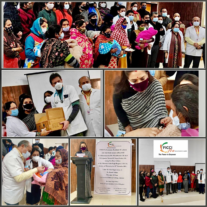 Early Times Report JAMMU, Dec 22: FICCI FLO JKL's Health initiative Amaanat kick starts in collaboration with JVG Pharmaceuticals, with the administration of Vitamin D3 drops at Shri Maharaja Gulab Singh Hospital, Jammu. The auditorium at S.M.G.S. Hospital saw an august gathering of senior doctors including Dr. G S Saini Professor and Head of Department Paediatrics SMGS Hospital, Dr. Jyoti Hak, Professor and Head of Department of Obstetrics and Gynaecology SMGS Hospital Jammu, Dr Sanjeev Digra, Professor Department of Paediatrics. Founding Chairperson FICCI FLO JKL, Ritu Singh, members of core team Varuna Anand Sr. Vice Chairperson, Ritika Trehan, Executive Secretary, Dr Palki Sharma, Varsha Bansal, Mona Saraf, Sita Anand, Arti Chaudhary, Neetu Bali, Pooja Kohli, Chandni Kapur, Shristi Nagpal, Payal Saraf, Arti Chowdhary were also present. |