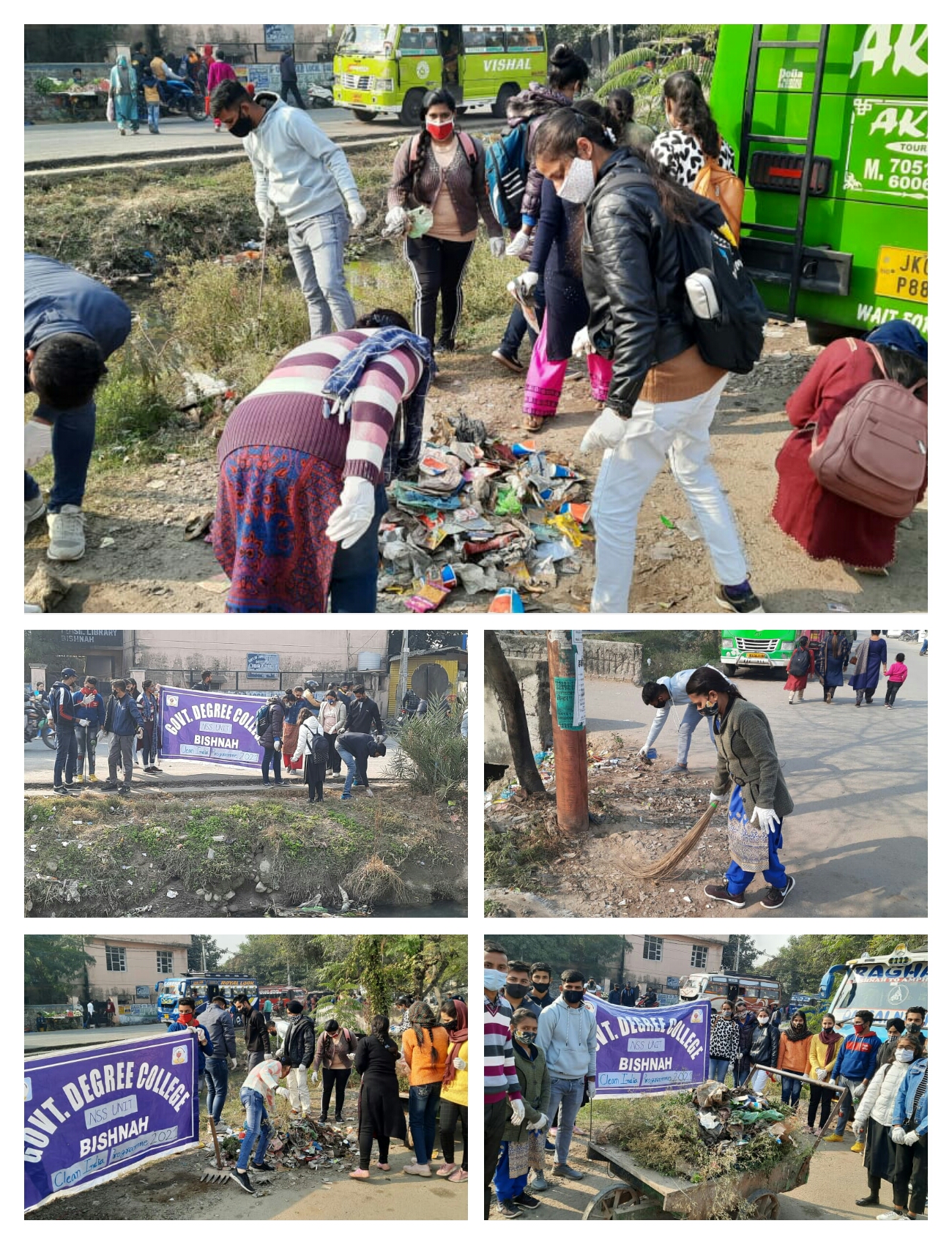 JAMMU, Dec 22: On the 2nd day of 7-day long Special Winter Camp as part of Clean India Programme-2021, the NSS Unit of GDC Bishnah in collaboration with Municipal Committee, Bishnah continued the cleaning of Ranbir Canal flowing through the Bishnah Town in front of the College Gate. Today the NSS volunteers undertook the Swachhata drive on the other bank of the Canal by picking the plastic and other waste material.The NSS volunteers also picked the solid waste from inside the Canal. Later they went to the shopkeepers near the Canal and made them aware of the hazards of throwing the waste material inside the water bodies like Irrigation canals. The NSS volunteers along with the NSS Programme Officer also met the President of Mini Bus Association and entreated him to ask the drivers and Conductors to convince the passengers traveling by their mini buses not to throw the waste on the banks of the Ranbir canal and instead throw them in the dustbin. After the drive, the NSS volunteers were given the refreshment too. |