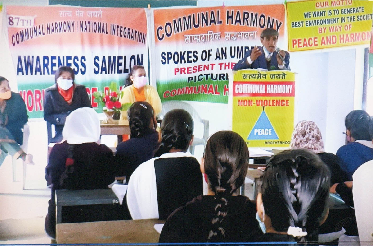 JAMMU, Dec 24: 87th seminar on communal harmony and national integration was held in the premises of Government Higher Secondary School, Bhour Camp, by Lekh Raj Raina organizer of peace and harmony of Rajouri under the chairmanship of Kiran Badyal, Principal of the school. Staff members along with 250 youth participated. Students of the school spoke on the subject and expressed their views with songs, speeches & poems and also stressed that communal harmony is essential for enter progress of the society as well as nation is the need of the hour. Raina thanked Principal of the school to arrange the seminar in her institution. Raina recited a beautiful song on communal harmony and stressed that youth of the society is the pillar of the nation to give them a sense of their responsibility is the prime duty of every citizen of the country. Raina said that being the citizen of a secular & a vast country we are proud to our heritage and rich culture and a powerful contribution than that of the other countries. It is said that a society ridden with class and caste distinction is a hindrance to development.