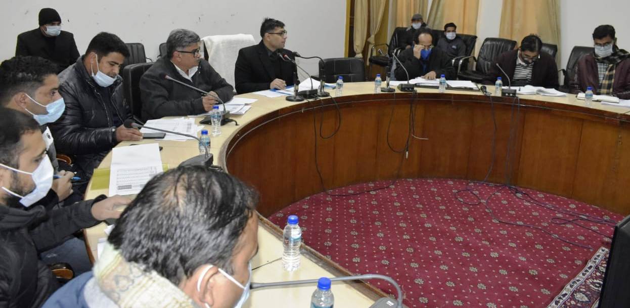 Early Times Report RAJOURI, Dec 26: District Development Commissioner Rajouri, Vikas Kundal today asked for timely execution of rural sector works, generation of adequate persondays and timely payment of wages under the flagship rural employment schemes. He was chairing a meeting of the concerned officers to review the performance of the Rural Development Department. The meeting was attended by ADC, Sachin Dev Singh; ACD, Sushil Khajuria; ExEn REW, Bashir Ahmed and Block Development Officers. The DDC reviewed progress under Prime Minister's Awas Yojna (Gramin); MGNREGA, Works taken up under Area Development Fund, Annual District Capex budget Plan, progress on construction of border Bunkers, B2V. He also sought details about person-days generation, aadhar seeding, wage payments, tendering of works and Geo-tagging of assets. The meeting was informed that out of targeted 30661 PMAY (G) houses for the current financial year, the work on 11242 stands completed, while out of 1867 border bunkers, 1497 have been completed. The DDC asked for expediting the pace of work on PMAY Houses as well as Bunkers for their timely completion. Taking a strong nore of deficit in generation of persondays in some blocks, he asked the concerned to meet the shortfall by the end of this month. He further directed the BDOs to ensure timely payment of wages in favour of the job card holders. Strict action against the non performing officials was also stressed upon. Reviewing the execution of works, it was informed that out of 2519 proposed works, the tenders for 2228 works have been floated. Taking serious note of low allotment rate, the DDC asked the ExEn REW to expedite the allotment. He further asked for achieving 100 percent Aadhar Seeding of beneficiaries of different schemes and the geo-tagging of all the completed assets.