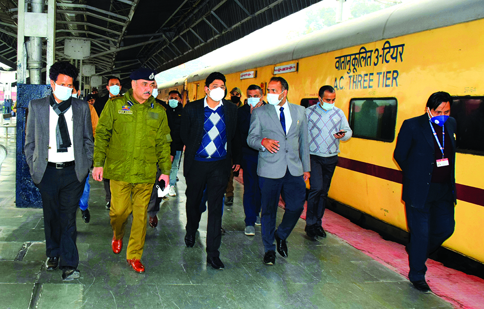 JAMMU, Dec 26: Divisional Commissioner Jammu, Dr Raghav Langer on Sunday visited Jammu Railway Station and took a first hand appraisal of passengers facilities and an overview of the station redevelopment plan. Divisional Traffic Manager (DTM), Mahesh Yadav gave an overview and apprised the Div Com regarding the upcoming station redevelopment project of Jammu railway station. It was informed that Jammu Railway Station has been identified by the Railways Ministry for re-development on Public Private Partnership (PPP) mode. The facilities proposed under the redevelopment plan include congestion free non-conflicting entry/exit to the station premises, segregation of arrival/departure of passengers, adequate concourse without overcrowding, integration with other modes of transport systems—bus and metro etc., user friendly international signage, well illuminated circulating area and sufficient provision for drop off, pick up and parking etc. The meeting also discussed the upcoming metro project alignment. The Railway authorities requested for developing the metro station nearby the existing railway station for easy access to the passengers. The Additional Divisional Railway Manager Jammu briefed the Div Com regarding cancellation/short termination of inbound & outbound trains due to farmers’ protest in Punjab. The Railway authorities apprised the Div Com that local trains as per need are being run by the Northern Railways between Katra -Amritsar section for the benefit of the passengers. Dr Langer also reviewed security arrangements at the station and the SSP Railways Arif Reshu briefed him regarding security aspects and other measures in place at the Railway Station. The Station Director lauded the role of Police authorities and cooperation being extended to them. Additional DRM Jammu apprised the Div Com that in the long run cargo terminal is planned to be shifted to Bari Brahmana station and oil terminal to Bajalta. This will make the passenger move totally hassle free at the Jammu Railway Station in times to come. The Div Com directed ADC Jammu to ensure that information regarding cancellation/short termination of trains is disseminated through the Information Department, while the public should be made aware to check the status of their trains through NTES (National Train Enquiry System). Railway authorities were told to share daily schedules with the information department for circulation in the media for information of the public. Meanwhile, the Div Com also interacted with the staff present at testing counters. The team of doctors on duty apprised the Divisional Commissioner about the arrangements being put in place by the district administration and the health department at the railway station for prevention and control of Covid-19. It was informed that a total 70 staff including doctors and paramedics has been deputed for testing at Railway station. “Around 1000 to 1100 RAT sampling and 150 to 250 RT PCR is done on an average, while there is a very low Positivity Rate’’ the health officials informed. It was informed that presently the influx of travelers is low. It was further informed that medical teams are available 24×7 and all the passengers are being sampled at the platforms. The Div Com was accompanied by Additional Divisional Railway Manager, Station Director Railways, Additional Deputy Commissioner Jammu, SSP Railways, SDM Jammu South, CMO Jammu, Nodal Officer Railway, Tehsildar Bahu besides other concerned officers. |