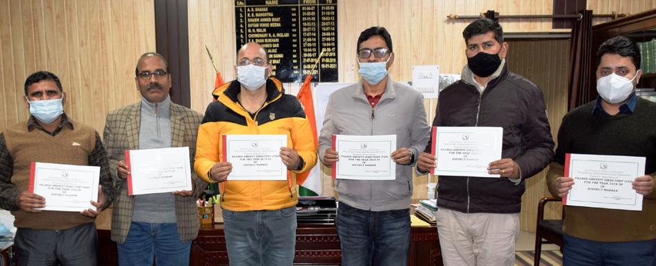 Early Times Report RAMBAN, Dec 27: Deputy Commissioner, Ramban, Mussarat Islam today released Village Amenity Directory (VAD) for the years 2019-20 of the District, here at a simple but impressive function. The Village Amenity Directory has been issued by the District Statistics & Evaluation Officer, Ramban. CPO, Dr. Kasturi Lal, ACD, Zamir Rishu; DSEO, Ganesh Kumar; Dy. DEO, Lal Chand; AD, Planning, Ashsaq-ur-Rehman and various other senior officers. On the occasion, the DC said that the basic objective of this publication is to bring out every year a database for measuring the developmental performance of different sectors and general economic profile of the area falling in the district. The DC also appreciated the efforts of the DSEO and his team for efficiently compiling the data and publication of VAD-2019-20 in a good manner. The DSEO informed that this publication has been prepared in the standardized format as prescribed by the Director General Economics and statistics, so as to maintain uniformity of the data at the district level and is of 13th in series. In the present publication titled "Village Amenity Directory (VAD)" 2019-20 efforts were made to give a detailed presentation of different developmental sectors that are helping in improving the socio- economic conditions of the inhabitants of the district, he added. |