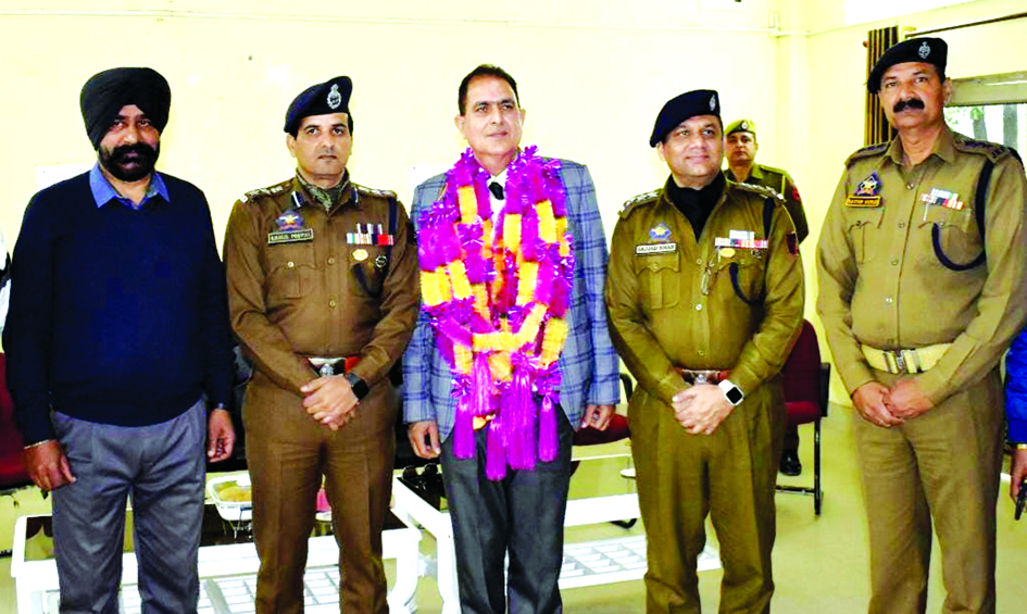 Jammu, Dec 31: Police Technical Training Institute (PTTI) Vijaypur on Friday organized an impressive farewell function upon the superannuation of SI Romesh Kumar after completion of 41 years of unblemished service in the Jammu and Kashmir Police. Shri Khalil Ahmed Poswal, JKPS, SSP Principal PTTI Vijaypur as well as other officers of the Institute appreciated the services rendered by the retiree and wished him all the best for his future life. Among others, Shri Rajinder Singh Rahi, Vice Principal, Shri Sajjad Ahmad Khan, Dy.SP (Indoor/PIO), Shri Satish Kumar, Dy.SP (Admn/Outdoor), Inspr. Anil Sagar (RI/CDI), Inspr. Daljeet Singh (CLI), Inspr. Neeraj Kumar, Inspr. Surrinder Paul, Inspr. Rakesh Bamba, Inspr. Manoj Kumar, Inspr. Vishal Kumar, Inspr. Rattan Singh, Inspr. Vivek Kalsotra were present on the occasion. |