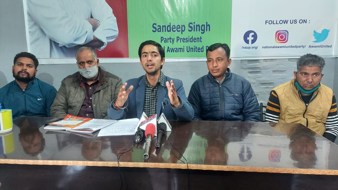 Jammu, Feb 6: National Awami United Party criticised Union government for growing unemployment in the J&K UT in the absence of any employment policy for the youth. National Awami United Party held a press conference at Party office jammu under the leadership of Parveen kumar District spokesperson.He said that Jammu has not received any real benefits upon the abrogation of articles 370 and 35-A. Meaningful gains should be transferred to Jammuites as already Jobs and resources can not be given away to outsiders without any real benefits to people of Jammu. NAUP appealed to the LG that as promised for fulfilling around 8500 vacancies of Class 4th in different departments. But so far only around 5000 vacancies have been filled. Therefore it is required that left over vacancies must also be fulfilled urgently. As already J&K is suffering high unemployment rate. Moreover thousands of daily wagers were engaged but same also not been regularised due which their families are suffering from many years. |