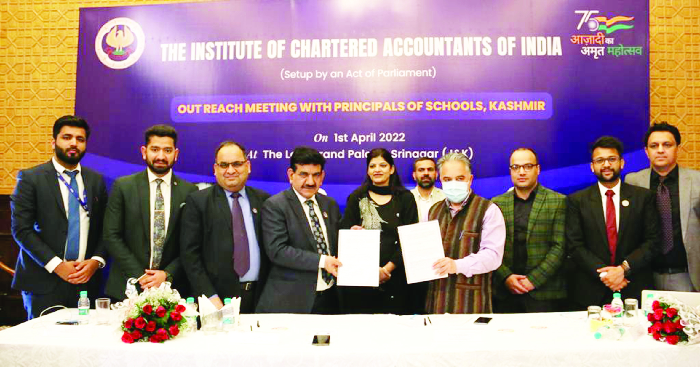 SRINAGAR, Apr 1: Committee on Career Counselling of The Institute of Chartered Accountants of India (ICAI) with the support of J&K branch of NIRC of ICAI and Srinagar Representative Office signed a Memorandum of Understanding with Directorate of School Education, Kashmir (DSEK) for promoting commerce education amongst government and government aided secondary and higher/senior secondary school students. The objective of this MOU is to establish mutual cooperation between both the parties. It is held that DSEK will nominate one representative in each school to coordinate with representatives of Committee on Career Counselling of ICAI for awareness campaign and promotion of Commerce Education more particularly CA Education.