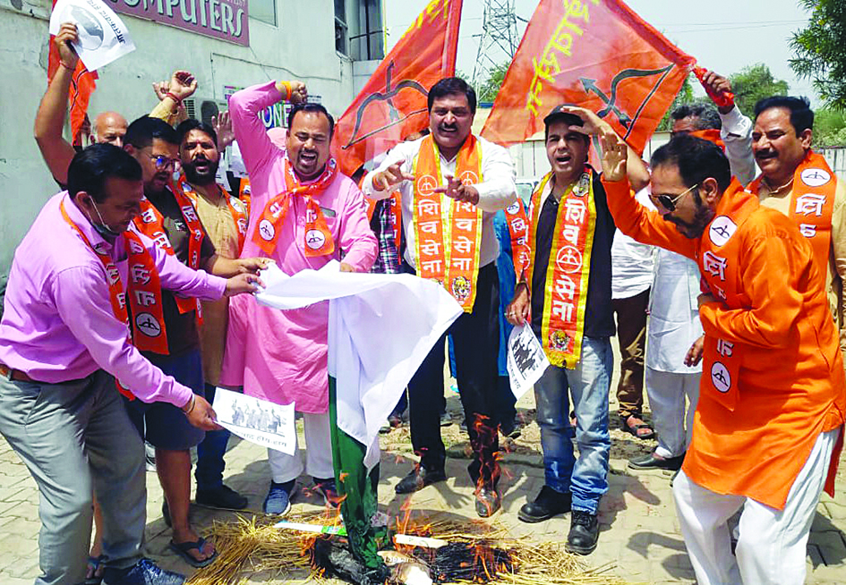 JAMMU, Apr 19: J&K Shiv Sena unit today staged protest against the threat given by the Pakistani funded terrorist organization TRF regarding the forthcoming Amarnath Yatra. Led by Manish Sahni, President J&K Shiv Sena, the party activists a burnt the flag of Pakistan and terrorist organizations. Sahni said that Pakistan and its puppet terrorist organizations, carrying nefarious intentions to disrupt the Amarnath Yatra, which cannot be succeed at any costs. He said that whenever there have been attempts to disrupt the Amarnath Yatra, devotees of Bholenath have joined the Yatra in large numbers. Sahni warned the anti-national elements not to try to challenge the faith of the devotees of Bhagwan Shiva as along with Jammu, the general public of Kashmir is also standing with wide arms to welcome the pilgrims coming on the Amarnath Yatra. He said that in presence of security forces, local citizens and Shiv Sainiks deployed in Jammu and Kashmir, no terrorist force has the courage to make an attempt to disrupt the Amarnath Yatra. Sahni said that Pakistan and terrorist organizations should not forget that the Shiv Sainiks of Bala Saheb Thackeray is standing wholeheartedly for the protection of religion and humanity. He urged the Prime Minister, Narendra Modi, to put a complete stop to all political, diplomatic and business relations with Pakistan, which nurtures terrorism, with immediate effect. |