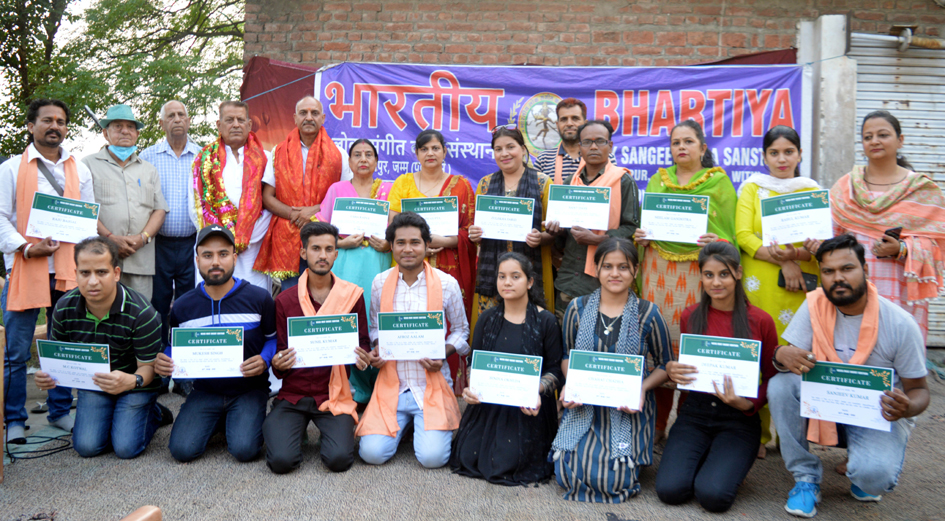 Early Times Report JAMMU, May 27: In continuation to the one month campaign of & To promote the traditional culture of J&K, Bhartiya Lok Sangeet Kala Sansthan (BLSKS) felicitated artistes certificates for their notable contribution in the field of performing art specially for their presentation of excellent Performances in 113th Friday Series Musical concert "BADTE KADAM", today at open air theatre , Durga Bhawan Janipur Jammu. A pledge was administered to more than 100 students , Staff and parents. Yash Pal Sharma , Municipal Councilor JMC Ward no 35 and Former chairman Swachh Bharat Jammu , who was the Chief Guest and over 20 artistes / technicians were honoured by giving certificates on the occasion who participates during"Nasha Mukt Bharat Abhiyaan" & others prestigious performances. V.K.Magotra, former Regional Director, Directorate of Field Publicity, Ministry of Information and Broadcasting, Government of India Dr.Anju Dogra, Medical Officer of Jammu and Kashmir Health Department, & Mukesh Singh, Media Person - The Shadow Newspaper and other dignitaries were the Guests of Honors on the occasion. The Chief Guest lauded the role of Bhartiya LokSangeet Kala Sansthan -(NGO) in promoting the Traditional folk culture of the region especially the efforts of the organizers in making such awareness programmes colorful and effective & intends to reach out to the masses and spread awareness about substance abuse through various activities like Awareness generation programmes, Focus on higher educational Institutions, university campuses and schools, Reaching out to the Community and identifying dependent population, Focus on counselling and treatment facilities in hospitals and rehabilitation centers that have been geo-tagged, Capacity building programmes for service providers. The artists of BLSks presented theme based songs which were written by Dr.M.L.Dogra & the music was the composed by Raju Bajgal, Music Instructor, Blsks. The program was also recorded & uploaded online on Social Media for benefit of the peoples. The Main Attraction of the program were international renowned artiste Zulekha Farid and renowned artites Usha Raina, K.K. Joshio, Rajni Gupta, Sapana Devi & Afroz Aalam. Further Dr. M.L. Dogra announces this abhiyan will continue in other identified district like Doda, Poonch, Rajouri & Kistwar for the welfare of people. |
