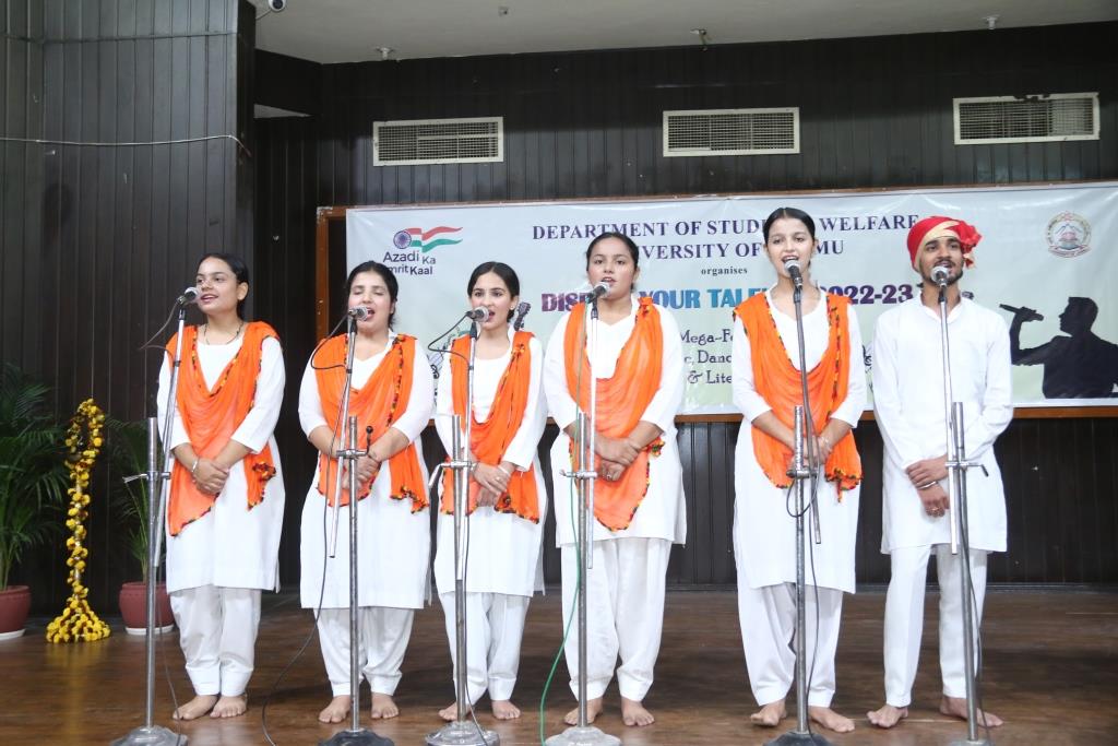 Early Times Report JAMMU, Nov 10: Two events of music viz Group Song Indian and Folk Instrumental Solo were conducted on the second day of ongoing 'Display Your Talent-2022-23' organized by the Department of Students Welfare, University of Jammu. Prof. Arvind Jasrotia, Registrar, Dean Students Welfare, Prof. Prakash Antahal, Chairperson Campus Cultural Committee, Prof. Vishav Raksha alongwith the Judges, dignitaries and Teachers Incharge felicitated the winners. In Group Song Indian, GCW, Udhampur stood First, GDC R.S. Pura was declared Second and GDC Ramnagar secured Third Position. Certificates of Merit were awarded to GDC (Boys) Udhampur and GDC Samba. O.P. Thapar, Sh. Surinder Manhas and Monu Kumar were the adjudicators and Dr. Padam Dev Singh was the Teacher In-charge. In Folk Instrumental Solo, Pardeep Kumar from GDC Paloura, Lakshya from GDC (Boys) Udhampur and Deepak Kumar from the Department of Dogri, JU stood First, Second and Third respectively. O.P. Thapar, Surinder Manhas and Sangat Ram were the adjudicators and Dr. Shallu Sehgal was the Teacher In-charge. The events of DSW are conceived, planned and organised by the team consisting of Prof. Prakash Antahal (Dean Students Welfare), Prof. Vishav Raksha (Chairperson, Campus Cultural Committee), Prof. Sanjana Kaul (Co-Chairperson, Campus Cultural Committee), Dr. Anil Gupta (Associate Dean SW), Dr. Garima Gupta and Dr. Pritam Singh (Assistant Deans, SW), Dr. A.R. Manhas & Dr. Shallu Sharma (Deputy Proctors), members of Campus Cultural Committee, Mansi Mantoo (Media Officer), Sumeet Sharma (Drama Instructor) and Ifra Kak (Cultural Officer). The events were witnessed by the members of Campus Cultural Committee, teachers, students, scholars of the University of Jammu and prominent members of the civil society. Janvi Sharma, Sunny Singh, Rohan Sharma, Insha Dawood, Deepika Rani, Palvasha Khanam, Vishal Sharma and Aryan Chalotra (Cultural Representatives) did the Hall Management. The sound was operated by Kulbhushan Thakur. |
