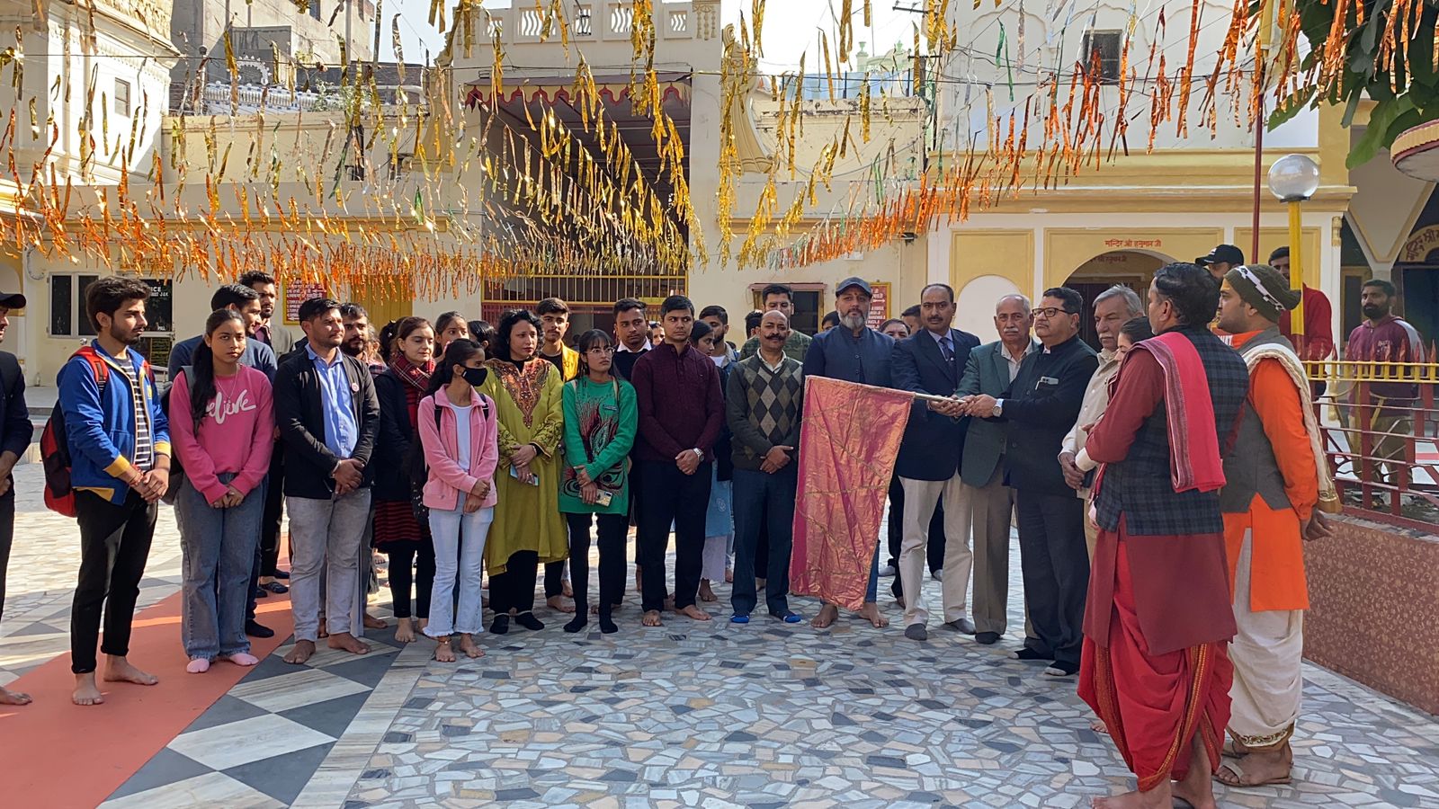 | Cleanliness drive, heritage walk organized at Raghunath Temple | | | Early Times Report JAMMU, Nov 23: NSS GGM Science College Jammu under the patronage of worthy Principal Dr. Rajesh Gupta and guidance of NSS PO Dr. Deepali Mahajan organized heritage walk and Cleanliness drive at Raghunath Temple in collaboration with INTACH Jammu Chapter. The temple consists of a complex of seven Hindu shrines. Raghunath Temple was constructed by the first Dogra ruler Maharaja Gulab Singh in the year 1835. All the spiral-shaped towers have gold plated spires. The niches in the walls of the shrines are decorated with 300 well-crafted icons of gods and goddesses including those of Surya and Shiva, but most are particularly related to the life stories of Rama and Krishna. The paintings in the 15 panels of the main shrine are based on themes from Ramayana, Mahabharata, and Bhagavad Gita. The temple premises include a school and a library that preserves over 6,000 manuscripts in many Indian languages, with a notable collection of Sharada script Sanskrit manuscripts. The temple complex is dedicated to Raghunath, another name for Rama. The entrance has a Surya icon, another manifestation of Vishnu. The main shrine which is 20 feet (6.1 m) x 20 feet (6.1 m) in size, is surrounded by a circumambulatory passage (pradakshina path) of 10 feet (3.0 m) width. The entrance door, set on one side of this octagonal chamber of the shrine, faces east. The interior of the inner chamber is gold plated. The interior panels have a surfeit of paintings of the Jammu School of painting consisting of images from the Hindu epics Ramayana, Mahabharata, and Bhagavad Gita, represented by gods such as Ganesha, Krishna, Sheshashayi Vishnu and also a large painting depicting the Sita Swayamvara scene. In the main shrine, the idol of Lord Rama is placed. The temple is also enshrined with a very large number of Saligramas. A distinct feature noted in the entire temple complex is the stucco style embellishments built with brick masonry and finished with plaster. The motifs crafted are of floral (lotuses) and geometric designs, on the walls, in the niches and on arches. Apart from paintings on the walls, the niches in the interior parts of the shrines have 300 well crafted images of deities. The profusion of paintings and images on the internal and external faces of the temple was considered an auspicious feature, instead of leaving the wall surfaces blank. The NSS volunteers also carried out Cleanliness drive in the temple area. |