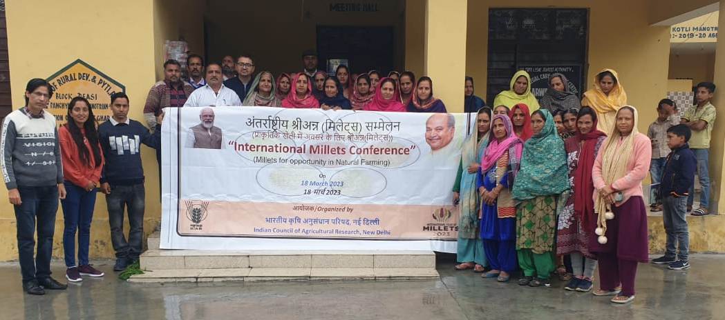 | KVK on organizes Training Programme on Millets | | | Early Times Report REASI, Mar 18: Krishi Vigyan Kendra (KVK), Reasi under the aegis of Sher-e-Kashmir University of Agricultural Sciences and Technologies of Jammu (SKUAST-J) organized the training programme on millets here today at Karua village in Reasi distt. of J&K. Large number of farmers of the area enthuastically attended the programme and also viewed the live telecast of the international conference on millets organized by the ICAR, New Delhi. The two day International Conference on Millets was officially inaugurated by the Hon'ble Prime Minister of India, Narender Modi at Indian Council of Agricultural Research (ICAR), New Delhi. The programme was organised under the able guidance of Director Extension (DE) of SKUAST-J, Prof.SK Gupta. Before the initiation of the programme, Dr.Banarsi Lal, Sr. Scientist and Head of KVK, Reasi formally welcomed the participants and briefed the objectives of the programme. He urged the farmers to view the live telecasting of inauguration of the event with full enthusiasm to know more about the millets. While inaugurating the event, Hon'ble PM of India, Narinder Modi said that millets can help to tackle the challenges of food security as well as food habits. He asked agricultural scientists to work towards increasing the share of nutri-cereals in the national food baskets. Dr.Banarsi Lal, Sr. Scientist and Head of KVK, Reasi spoke on the importance of millets and urged the participants to grow millets of commercial level so as to increase their farm income and add nutritional security. He said that millets can be grown in the rainfed conditions with the limited inputs and their cultivation transform the lives of small and marginal farmers. He also stressed on natural farming to produce the quality food. He stressed on the innovations to uplift the socio-economic status of the farmers. Dr. Lalit Upadhyay, Scientist spoke on the nutritional value of millets and guided farmers on the scientific cultivation of millets. He spoke in detail on the consumption, nutritional security and climate resilience of millets. He stressed on the commercial cultivation of millets for more returns. Dr. Lobzang Stanzen, Scientist elaborated the production technology of millets. He narrated that millets like foxtail, finger millet, pearl millet, sorghum etc. can be grown in Reasi distt. and farmers can generate more income and employment by growing them. He said that millets are climate resilient and can be grown under rain fed conditions. Preeti Chaudhary spoke on the International Year of Millets-2023 and spoke on the nutritional value of millets. During the programme an interactive session was also organized for the farmers during which various quarries regarding the millets were raised by the farmers which were answered satisfactorily by the KVK scientists. Farmers showed keenness during the programme. During the programme Sarpanch of the area, Baldev Raj Sharma was also present who thanked KVK, Reasi for organizing such a useful programme. The programme was assisted by Manohar Lal and concluded by Preeti Chaudhary with the formal vote of thanks. |