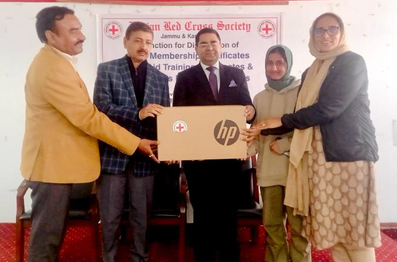 | Red Cross organizes Raffle Draw Prize Distribution, Certificates, Life Membership | | | Early Times Report JAMMU, Nov 25: The Indian Red Cross Society, Jammu and Kashmir, organized a dynamic event on November 25, 2023, at Red Cross Bhawan, Kachi Chawni, Jammu. The event featured the distribution of prizes for the Raffle Draw, First Aid Certificates, and Life Membership Certificates, under the leadership of Manoj Sinha, Hon'ble Lt. Governor (President, IRCS) Jammu and Kashmir. R.K Shavan, JKAS, MD, JK Project Construction Corporation Ltd., graced the occasion as the chief guest, while Rehana Tabassam and Er Kuldeep Singh, Assistant Regional Transport Officer, were the Guests of Honour. The function commenced with the ceremonial lighting of the lamp and the presentation of bouquets to the esteemed guests. Vironica Marwah, Field Officer, welcomed the guests and provided an overview of the various programs and activities conducted by the Red Cross in Jammu and Kashmir. The Raffle Draw, conducted on May 8, 2023, aimed to collect funds to provide essential relief, medical assistance, and support to those facing challenging circumstances, including individuals suffering from ailments such as cancer, kidney issues, liver problems, Thalassemia, and more. The winners of the Raffle Draw were announced, and exciting prizes like a Laptop, Voltas Window AC 1.5 Ton, LG LED 32', and LG Microwave were distributed. The event also acknowledged individuals who completed first aid training through IRCS, Jammu and Kashmir. Certificates were awarded to participants, recognizing their commitment to acquiring life-saving skills. Furthermore, life membership certificates were distributed to individuals who registered themselves as Life Members, expressing their dedication to the humanitarian mission of the Red Cross. The chief guest and guests of honour were presented with mementos as a token of appreciation. In their speeches, they congratulated the Red Cross for the successful program and emphasized the need for more coordinated and scientific activities to reach and cover the maximum number of people in need of Red Cross support. They highlighted the unique role of the organization in caring for the sick and suffering, seeking cooperation from all departments and the public to reach out to the unreached. |