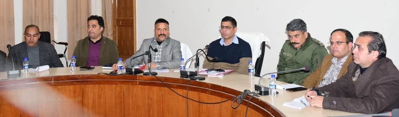RAJOURI, Nov 28: Deputy Commissioner Rajouri, Vikas Kundal, chaired a meeting to review the preparedness for the upcoming JKSSB exams for the post of Panchayat Secretary scheduled to be held on December 10, 2023. The meeting focused on the crucial aspects to ensure a seamless and fair examination process. Regarding the appointments of supervisory staff, the meeting was informed that 38 superintendents and 11 Deputy Superintendents besides observers have been appointed to conduct the exam. The examination will take place at 38 examination centres and 13248 candidates are appearing in the exam. Additionally, it was informed that the training program for Superintendents and Deputy Superintendents will take place at GDC Rajouri shortly aiming to enhance their preparedness for ensuring the smooth and efficient conduct of the upcoming exams. This measure underscores the commitment to meticulous planning and the pursuit of the highest standards in examination administration. To maintain the integrity of the examination, a strict invigilator-to-student ratio has been established to ensure close monitoring. Magistrates will be appointed at all examination centers to guarantee a peaceful and orderly conduct of the examination. A comprehensive security plan has been devised to safeguard the examination venues, ensuring the safety of both the candidates and examination personnel. In an effort to prevent any unfair means during the examination, it was decided that mobile phones and other electronic devices would be strictly prohibited within the examination centers. The meeting was attended by the ADC Rajouri, Rajiv Kumar Khajuria; PO ICDS, Shoket Mehmood Malik; ASP, Vivek Shekhar; ACR, Imran Rashid Kataria; SDM Thanamandi, Shafeeq Mir; AC Defence, Saleem Quershi; ACP, Sheraz Chowhan; DSEO, Sandeep Sharma; CMO, Dr Rajinder Sharma; CEO Education, Bishamber Dass; DTO, Mohd Rashid and other concerned officers. |