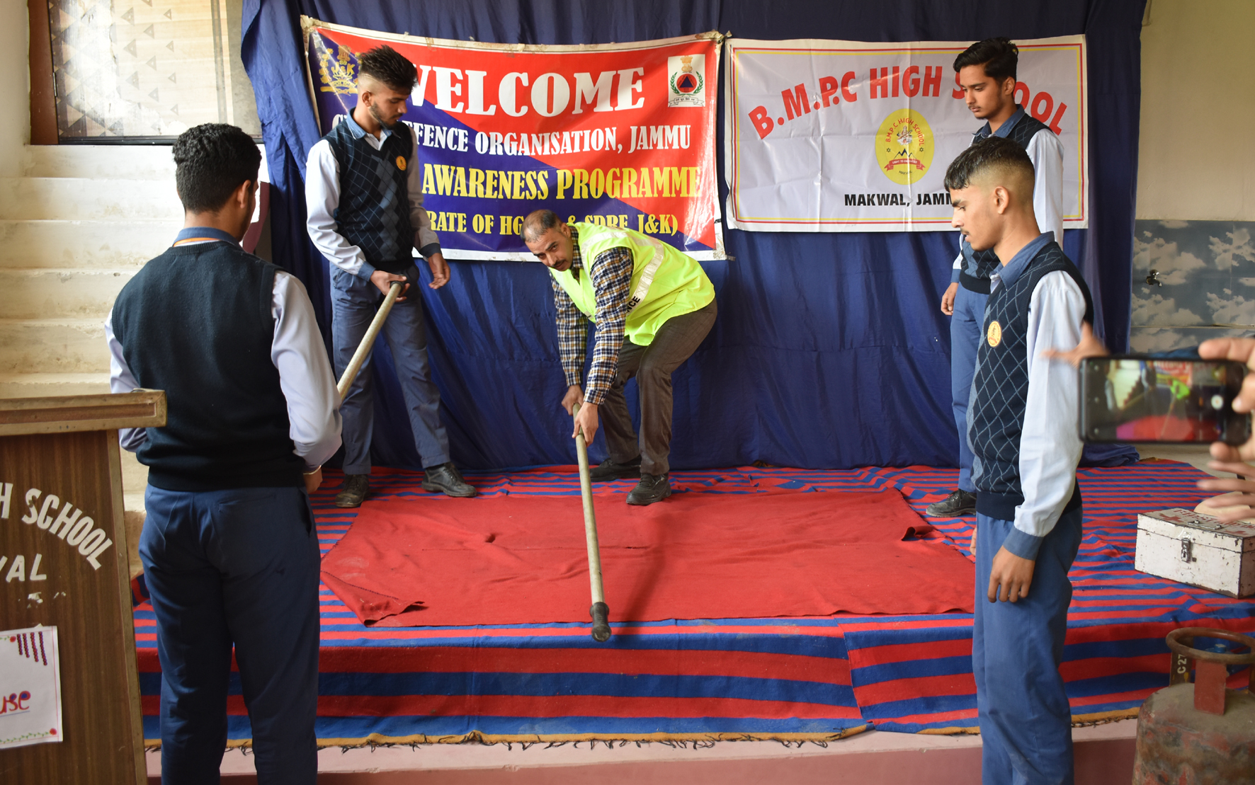 Early Times Report JAMMU, Feb 27: One day awareness programme was held at B.M.P.C High School, Makwal Satwari, Jammu which was organized under the supervision of Deputy Controller Civil Defence, Jammu. 100 Students of the School have attended the awareness programme. Awareness about the basic knowledge of First Aid, Fire fighting, CPR, Chocking especially on Drug addiction and other life saving techniques were given to the trainees by the Civil Defence expert. During the programme demonstration on the above said topics was also presented by the Civil Defence team. The main aim of the awareness programme was to educate students with regard to preventive measures during natural or man-made disasters. On the Occasion Rakesh Sharma, Principal of the High School appreciated and thanked the Civil Defence team for organizing such programme. Paramjit Kumar Chief Warden CD Jammu, R. Vijay Magotra, Dy. Chief Warden CD, Jammu, Yashpaul, Vice Principal of the School, Raj Kumar, Dy. Post Warden CD, Jammu, SI Ram Dayal Saini, Sub- Inspector, in charge Civil Defence Trainings and other staff of the School also present on the occasion. |