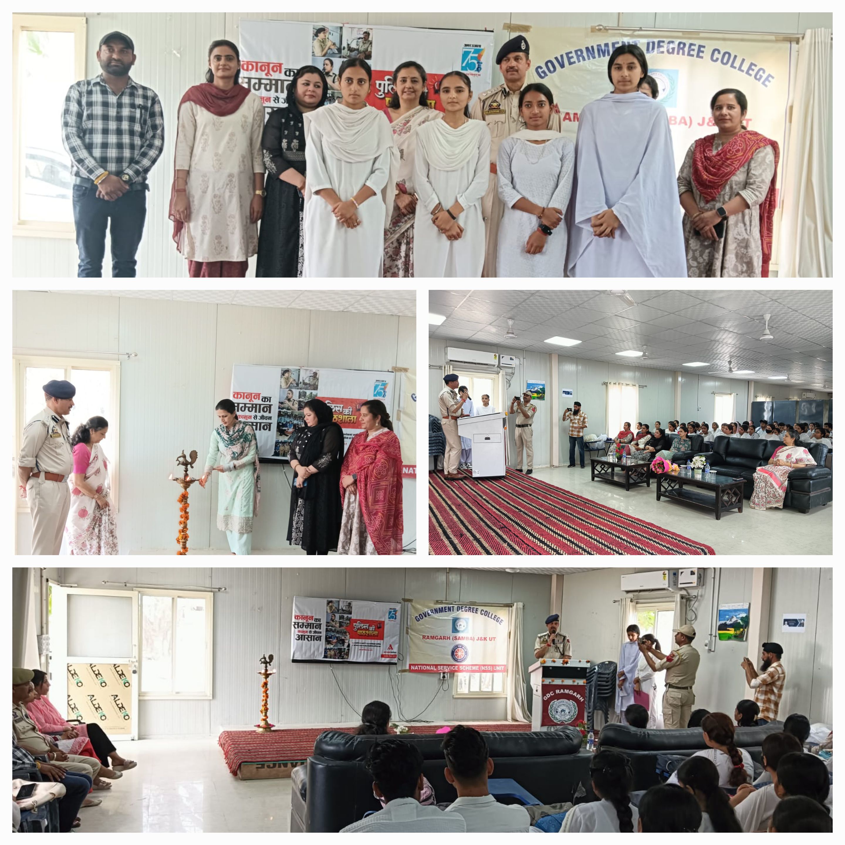 Ramgarh, Apr 15: Police Department, Samba. The Chief Guest on the occasion was Shri Surinder Choudhary -JKPS, Additional SSP Samba. The event was organised under the supervision of Principal Dr. Geetaanjali Andotra. In her welcome address the Principal welcomed the Chief Guest and the team from Amar Ujala and highlighted the relevance of holding such programmes wherein the youth is made aware about the ill effects and repercusions of drug abuse and related activities which have devastating impact on individual, family and large section of society. She expressed her gratitude to the police department and the Amar Ujala foundation for reaching out to the youth and holding this awareness programme. The Chief Guest Shri Surinder Choudhary - JKPS, Additional SSP, Samba, in his presidential address spoke on drug abuse and described consumption and trade of narcotics as the worst possible crime. He further apprised the students about various criminal activities related to drug abuse that are punishable under law and exhorted the students to stay away from such activities to secure their future and help in nation building. He also emphasized that police needs the support and cooperation of youth to win the war against drug abuse and Narcotics. Further, students of the college, namely, Jagmeet kour, Radhika shukla and Tanu sharma participated in the symposium on the topic & Nasha Mukht Bharat. The Participating students were presented with prizes by Amar Ujala Foundation. All the faculty and students of the college enthusiastically witnessed the programme. The vote of Thanks was presented by Dr. Aditi Khajuria. |