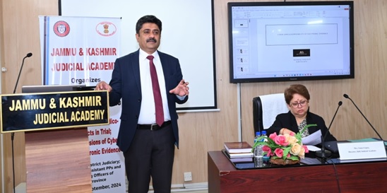 | Two-day special orientation programme on medical forensics, cyber crimes concludes at JKJA | | | Early Times Report JAMMU, Sept 29: The two days Special Orientation programme on 'Medical Forensics & Medico-Legal Aspects in Trial; Different Dimensions of Cyber Crimes and Electronic Evidence' concluded today at J&K Judicial Academy (JKJA), Janipur, here. The programme was organized by JKJA for Judges of District Judiciary, PPs/Additional PPs/Assistant PPs and Investigating Officers of Jammu Province. On the second day, both the sessions were conducted by Nisheeth Dixit, Advocate from Delhi,l who gave a detailed overview of the concept of cybercrimes and discussed the challenges for Judges, Investigating Officers and Prosecutors. He said that as technology advances, so do cyber offenses, including hacking, identity theft, cyber fraud, and content-related offenses like child pornography, xenophobia, and racism. He added that the Information Technology Act, 2000, along with provisions in the IPC/BNS, provide the legal framework to deal with these crimes. The resource person also highlighted various landmark judgements on IT Act and shared various real-life experiences related to the combating cases of cyber-crime. He also emphasised the characteristics of electronic evidence and how it is treated under the law. Dixit stated that the possibilities to manipulate electronic evidence are varied, and the court must take all possible precautions against possible alterations. He further said that in making an assessment, the judge should keep in mind the position of each party related to the electronic evidence provided, especially if the opposing party rejects (contests) its validity. All the sessions were interactive during which all participants actively participated and shared their experiences. They also discussed various aspects of the subject topics. The participants also raised number of queries which were answered satisfactorily by the resource person. The programme concluded with vote of thanks by Director, JKJA, Sonia Gupta. |