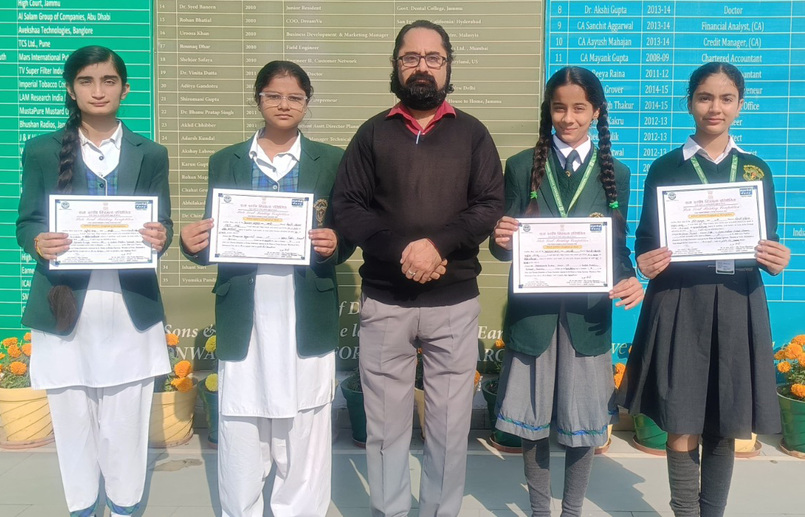 Early Times Report JAMMU, Nov 30: As a part of National Awareness Campaign to promote Energy Conservation in the country, National Hydroelectric Power Corporation Ltd. (NHPC), Ministry of Power, Govt. of India organized a prestigious State Level Painting Competition on 14 th November, 2024 at NHPC Regional Office, Jammu wherein Aaradhya Shan (VII-A) & Gouri Rajput (VII-A) won cash prize of Rs. 9500/- & Rs 2000/-, respectively in category-A while Mimansa Aggarwal (X-A) & Drishti Singh (IX-I) also won cash prize of Rs. 9500/- & Rs 2000/-, respectively in category-B. The competition was organized by NHPC for classes V, VI, & VII under group-A and for VIII, IX & X under group-B. Around 15000 students from J&K U.T had participated in the said competition. The esteemed Management DPS Jammu, Hon'ble President-RCT, Sh. M.K Ajatshatru Singh Ji, Distinguished PVC-Kuwarani Dr. Ritu Singh Ji, Hon'ble Director-Sh. S.S Sodhi Ji along with Principal- DPS Jammu and staff congratulated the students and their teacher in-charge, Mr. Suresh Kumar Sharma for brilliant display in the said event. They also extended their best wishes to them for all their future competitions. |