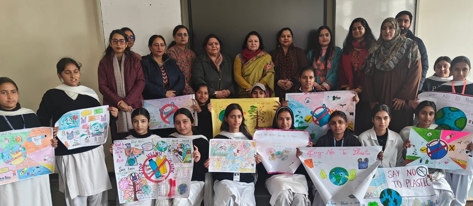 UDHAMPUR, Dec 12: Promoting the critical message of reducing plastic usage and its environmental impact, as part of academic activity, Govt. College for Women successfully organized a poster-making competition on the theme “Say No to Plastic” by the HOD Prof. Pooja Bharti and Dr. Padma Sharma, Department of Environmental Sciences. The event saw enthusiastic participation from 13 talented students who showcased their creativity and awareness about the pressing environmental issue. The college lecture hall buzzed with excitement as participants unveiled their thought-provoking posters, emphasizing the importance of sustainable alternatives to plastic. The posters ranged from impactful slogans and striking visuals to artistic depictions of plastic pollution and its harmful effects on the planet. The competition was graced by the presence of Principal Prof. Nalini Pathania, who joined midway and applauded the efforts of the students. She emphasized the significance of individual responsibility in combating the plastic crisis and commended the participants for their innovative expressions. Judges Prof. Anita Sharma and Prof. Shama Rani evaluated the entries based on creativity, relevance to the theme, and overall presentation. While winners were honored with prizes, Principal Prof. Nalini Pathania highlighted the importance of participation, stating, “It’s not about winning or losing; every effort towards spreading awareness matters.” Alongside the esteemed Principal and competition judges, several faculty members also graced the event with their presence, adding to the supportive atmosphere. The event concluded with the judges and principal distributing medals to the winners, leaving the students inspired to champion the cause of a plastic-free environment. GCW College continues to lead by example in fostering environmental consciousness and inspiring change. Dr. Padma Sharma expressed her heartfelt gratitude to all present at the event, appreciating their contributions and participation, which made the poster-making competition on ‘Say No to Plastic’ a resounding success. She extended special thanks to the Principal, judges, faculty members, and the enthusiastic students who supported the initiative wholeheartedly. |
