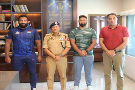 Early Times Report SRINAGAR, July 22: Shri Anand Jain, IPS, Additional Director General of Police (Armed), Jammu and Kashmir, today felicitated wrestler Binyamin and Isaq at the Armed Police Headquarters Srinagar for their outstanding achievement at the World Police & Fire Games held recently in the United States of America. Both the officials brought pride to the Jammu and Kashmir Police by securing Gold Medals at this prestigious international sporting event, demonstrating exceptional talent, determination, and athletic excellence on the global stage. The ADGP Armed congratulated the medal winners for their remarkable performance and commended their role in elevating the reputation of J&K Police at the international level. He noted that their success would serve as a source of inspiration for fellow personnel and aspiring athletes within the force. |