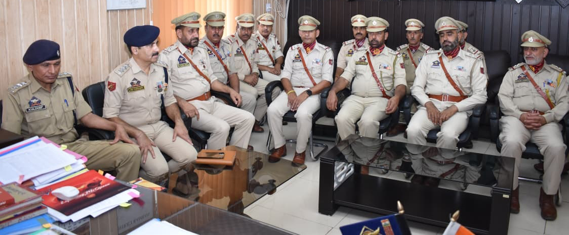 Pipping ceremony held at district police office Ramban | | | Early Times Report RAMBAN, Sept 30: A pipping ceremony was held today at the District Police Office Ramban to honor and officially induct newly promoted Sub-Inspectors (SIs) of the Jammu and Kashmir Police. The ceremony marked a significant milestone in the professional journeys of the officers. Senior Superintendent of Police (SSP) Ramban, Shri Arun Gupta (JKPS), presided over the event and personally decorated the promotees with their new ranks. DySP Headquarters and DySP DAR were also present in the ceremony, who congratulated and extended best wishes to the newly promoted officers. In his address, SSP Ramban highlighted the enhanced responsibility and accountability that comes with promotion. He urged the officers to serve with utmost dedication, uphold professionalism, and adopt a public-centric approach in all their duties. He emphasized that integrity and commitment should remain the cornerstones of effective policing.He also exhorted them to take good care of their health. The elevated SIs expressed their gratitude for the recognition and pledged to carry out their responsibilities with honesty and diligence. The ceremony not only celebrated their achievements but also served as a motivational moment, inspiring them to continue serving the public with integrity and devotion. |