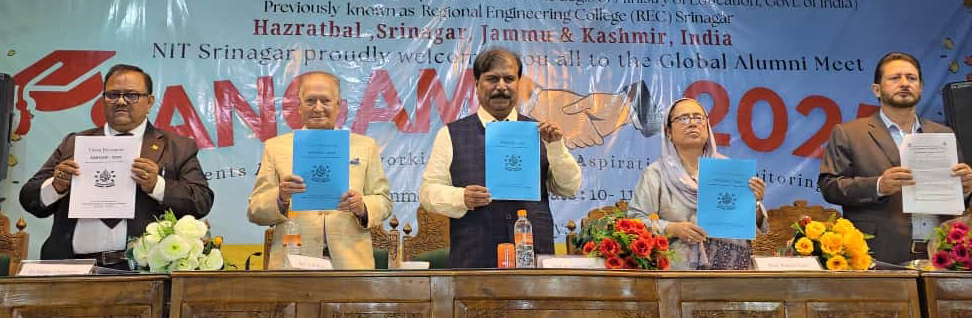 Early Times Report SRINAGAR, Oct 11: The two-day annual alumni meet, SANGAM-2025, concluded successfully at the National Institute of Technology (NIT) Srinagar on Saturday. The event was organized by the Office of Dean Alumni and International Affairs (A&IA) in collaboration with the NIT Srinagar Alumni Association, bringing together distinguished alumni, faculty, students, and guests from across the country. The event was presided over by Chief Guest Prof. A. Ravinder Nath, Vice Chancellor of Central University of Kashmir; In-charge Director NIT Srinagar Prof. Roohie Naaz Mir; Dean Alumni and International Affairs Dr. Prof. MA Shah; Registrar Prof. Atikur Rehman; and former Director Prof. A.M. Wani. Other guests included Er. Ram Mohan, Dr. Pradeep Tyle, and Er. Mally Chatterjee, Er Amir Ali, and Chairman NLCO Manzoor Wangnoo, who were the Guests of Honor. In his keynote address, Prof. A. Ravinder Nath, VC, Central University of Kashmir, highlighted the importance of effective communication, strong connections, and coordinated efforts among the alumni network to enhance the growth and reputation of NIT Srinagar. "Alumni serve as a vital bridge between the institute and the global professional community, facilitating mentorship, industry linkages, and opportunities for current students," he said. Prof. Nath also encouraged the alumni to participate in institutional initiatives actively, contribute to research and innovation, and strengthen the bond with their alma mater for the collective development of students and the institute. Director NIT Srinagar, Prof. Binod Kumar Kanaujia, commended the organizing committee for successfully hosting SANGAM-2025 and reaffirmed his commitment to strengthening the institute's global reputation. "Our alumni are our strongest ambassadors. Their continued association with the institute helps us evolve academically and socially," he said. Prof. Kanaujia said NIT Srinagar stands at a crucial juncture of transformation, and alumni engagement will be pivotal in achieving our collective goals. In her address, I/C Director NIT Srinagar, Prof. Roohie Naaz Mir, said NIT Srinagar had made significant progress in research, innovation, and student welfare over the past few years. She said that the institute aimed to deepen its alumni engagement through joint academic and social initiatives. "Alumni are key stakeholders in institutional growth and their participation ensures continuity of excellence," Prof. Roohie said. Prof. A.M. Wani, former Director of NIT Srinagar, praised the organizers for conducting the event and reflected on the institute's journey since its inception. He said NIT Srinagar's growth story has been shaped by its visionary faculty and globally successful alumni. Institute Registrar Prof. Atikur Rehman presented a detailed account of the institute's academic progress, research achievements, and infrastructural developments. He highlighted several initiatives undertaken to strengthen interdisciplinary research, promote startups, and enhance global academic collaborations. "We are committed to ensuring that NIT Srinagar continues to serve as a centre of innovation, inclusivity, and excellence," Prof. Rehman said. In his welcome address, President of Alumni Association, NIT Srinagar, Prof. M.S. Mir, praised the institute's consistent progress in academics and infrastructure. He said alumni must act as ambassadors of NIT Srinagar's legacy in their respective professional domains. "Our alumni community reflects the institute's excellence; your collective success strengthens the brand of NIT Srinagar nationally and globally," he said. In his remarks, Prof. M.A. Shah, Dean Alumni & International Affairs, underscored the growing global footprint of NIT Srinagar alumni and the significance of nurturing strong institutional bonds. He stated that SANGAM-2025 symbolizes the "bridges of knowledge and friendship" built over decades, and reflects the institute's progressive vision for academic excellence and global outreach. Prof. Shah emphasized that alumni are not only ambassadors of the institute's values but also vital contributors to its future growth. "Our alumni are the pillars of our progress. This platform is about reconnecting, rediscovering, and reinventing together," he said, adding that the vision document for 2030 was also released at the conference. Er. Aamir Ali, General Secretary of the Alumni Association, presented an overview of the association's activities and initiatives. He called for structured alumni engagement programs to support students through mentorship and internships. Er. Ram Mohan, Guest of Honor, highlighted the importance of technical education in national development and urged alumni to contribute towards capacity-building and skill enhancement programs at NIT Srinagar. Dr. Pradeep Tyle, another Guest of Honor, focused on research-led innovation, stressing the need for industry-driven projects. He said, "Our graduates must be equipped not only with theoretical knowledge but also with the ability to innovate for local and national needs," he said. Er. Mally Chatterjee, Guest of Honor, underscored the need for a strong alumni endowment fund to support scholarships, research, and campus infrastructure. "The success of any institute lies in the strength of its alumni network," he said. Chairman of NLCO, Manzoor Wagnoo, appreciated NIT Srinagar's efforts in organizing SANGAM-2025 and reconnecting generations of graduates. He emphasized the need for stronger industry-academia linkages to make technical education more relevant to emerging global challenges. The highlight of the morning was the release of "Bridges & Beacons: A Chronicle of NIT Srinagar" by the dignitaries. The publication captures the institute's evolution, landmark achievements, and success stories of its alumni. Er. R.A. Fani, Editor-in-Chief, in his brief remarks, said that there is importance of preserving the institution's historical record and strengthening alu