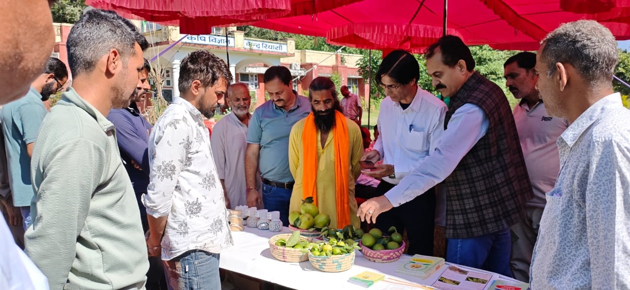 Reasi, Oct 12: Krishi Vigyan Kendra (KVK), Reasi under the administrative control of Sher-e-Kashmir University of Agricultural Sciences and Technologies Jammu (SKUAST-J) organised live telecast programme on Pradhan Mantri Dhan Dhaanya Krishi Yojana(PM-DDKY) and Mission for Aatmanirbharta in Pulses here at KVK Reasi campus which was attended by number of farmers of the area. The programme was organized under the dynamic leadership of Hon’ble Vice Chancellor, Prof.B.N.Tripathi and guidance of Director Extension, Prof.Amrish Vaid of SKUAST-J.During the programme Hon’ble Prime Minister,Sh.Narendra Modi launched Pradhan Mantri Dhan Dhaanya Krishi Yojana(PM-DDKY) and Mission for Aatmanirbharta in Pulses at IARI,New Delhi with an outlay of more than 35 thousand crore rupees. The programme was inaugurated by the Chief Horticulture Officer,Sh.Rajinder Kumar Sharma as the Chief Guest.He visited the different stalls exhibited at KVK and appreciated the efforts of farmers for commercial farming.He appreciated the efforts of KVK for promotion of different technologies in the area. He stressed on the cultivation of lemon and dragon fruit farming in monkeys prone area and created awareness on various schemes undergoing in the district. He stressed on value addition in crops and guided farmers on PM-DDKY scheme. He also discussed on women empowerment and stressed on marketing of SHGs products. He applauded the efforts of KVK Reasi for the welfare of farmers.Earlier Chief Scientist and Head of KVK, Reasi, Dr.Banarsi Lal warmly welcomed the participants and briefed the objective of the programme. He elaborated the Pradhan Mantri Dhan Dhaanya Krishi Yojana(PM-DDKY) and Mission for Aatmanirbharta in Pulses. He guided farmers on scientific cultivation of pulses and stressed on quality seeds and other agro- inputs to increase the crop quality and production. He also spoke on various other agril. schemes and gave a detail view on scientific agriculture. He stressed on commercial agriculture and guided farmers on organic formulations for more profits.He elaborated the scientific farming for enhancing the farmers’ income and stressed on SHGs/FPOs for more profits.He also discussed on monkeys menace management and emphasized on spices and marigold cultivation.Dr.Lalit Upadhyay,Dr.Sanjay Koushal,Dr.Jagdish Kumar and Dr.Arvinder Kumar also spoke during the event.Participants thanked Hon’ble PM, Sh.Narender Modi for their financial support for agricultural development.Sarpanches of the area,Sh.Sukhdev Singh and Sh.Bodh Raj also spoke during the event and thanked KVK Reasi for providing the technical support to the farmers.During the programme line departments and SHGs also displayed their exhibition which were highly appreciated by the Chief Guest and farmers.During the programme progressive farmers were also awarded by the dignitaries. The proceedings of the programme were carried by Dr.Jagdish Kumar.The programme was assisted by Sh.Rakesh Kundal,Sh.Manohar Lal, Sh.Mohd.Iqbal, Sh.Summer Qureshi and concluded by Dr.Arvinder Kumar with formal vote of thanks.