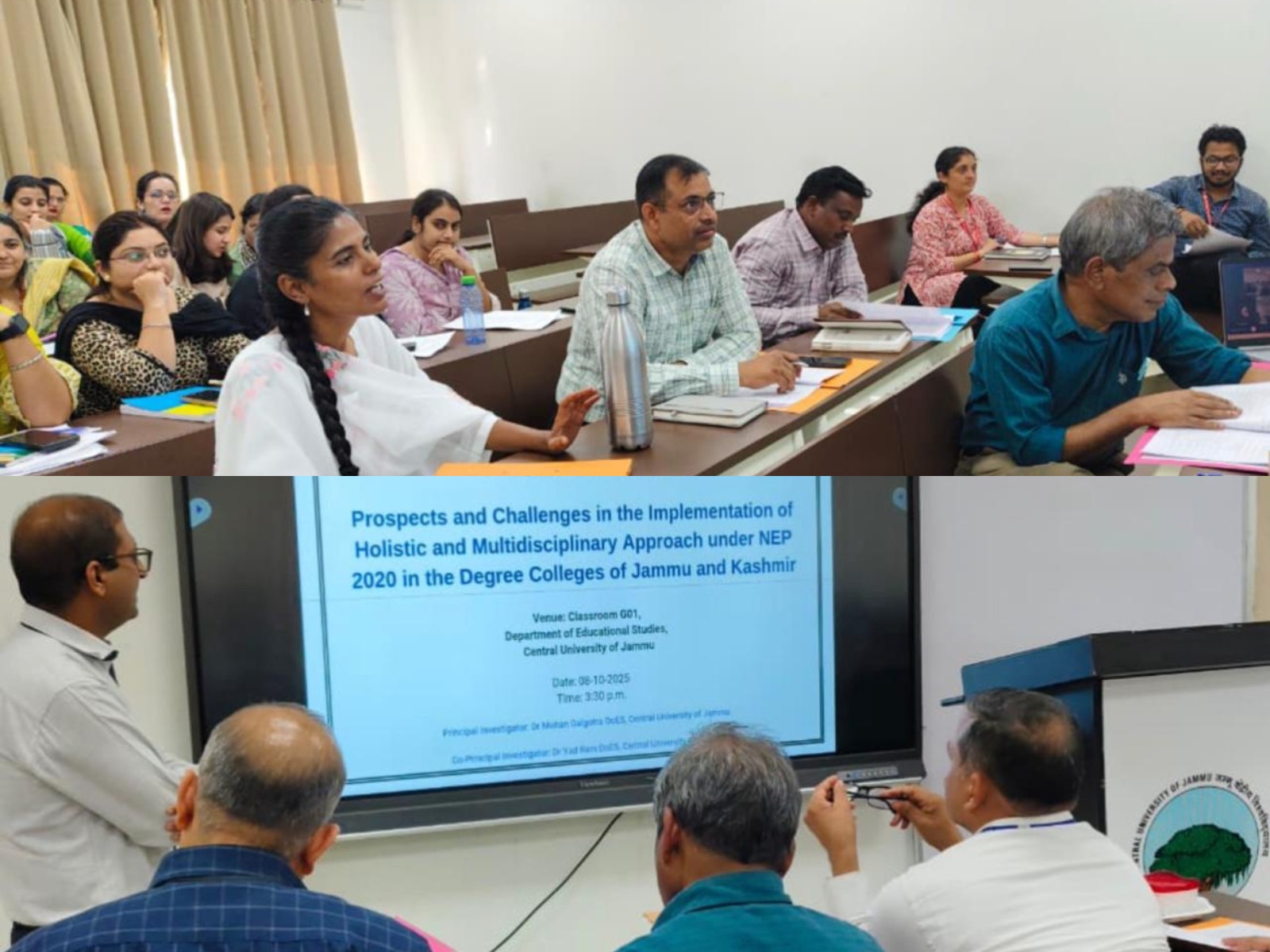 Jammu, Oct 12: A Consultative Meeting was successfully organized by Department of Educational Studies, Central University of Jammu today as part of the ongoing ICSSR-sponsored Research Project titled “Prospects and Challenges in the Implementation of Holistic and Multidisciplinary Approach under NEP 2020 in the Degree Colleges of Jammu and Kashmir” aimed at refining research tools and methodologies. The meet brought together a diverse group of experts, academicians, and field practitioners to deliberate on the relevance, structure, and effectiveness of the proposed tools designed for data collection. The principal objective of the meeting was to seek expert opinions and suggestions on the draft tools including questionnaires, interview schedules, and other data-gathering instruments—to ensure their validity, reliability, and contextual appropriateness. The meeting began with a welcome address by Dr. Jyoti Devi, Project’s Research Assistant, followed by a brief presentation on the research project by Dr. Mohan Galgotra, PI of Research Project. The presentation outlined the project’s background, objectives, research questions, methodology, and proposed tools. Eminent scholars and domain experts, including Prof. Ashwani Nanda, Dean, School of Social Sciences, Head of Department of Economics, Prof. Rajeev Rattan Sharma, Head, Department of Education, University of Jammu, Prof. Udhay Partap Singh, Associate Dean, Department of Mathematics, Central University of Jammu, Prof. Asit K. Mantry, Head, Department of Educational Studies, Central University of Jammu, Prof. J. N. Baliya, Prof. Ritu Bakshi, Dr. Kiran, Dr. Ravi Vanguri, Dr. Yad Ram, and Dr. Nidhi Sarraf provided constructive feedback on the tools, highlighting areas of improvement such as language clarity, cultural sensitivity, question framing, and sampling strategies. Several suggestions were also made regarding the inclusion of open-ended questions, scaling techniques, and pre-testing protocols. The event concluded with a vote of thanks delivered by Dr. Yad Ram, Co- PI of the research Project who expressed gratitude to the experts and participants for their valuable contributions and reaffirmed the commitment to uphold methodological excellence throughout the research process and also expressed gratitude to Prof. Sanjeev Jain, Hon’ble Vice Chancellor, CU Jammu for promoting research culture in the University. The research team acknowledged the support of the Indian Council of Social Science Research (ICSSR) for funding and facilitating this important initiative and looks forward to further academic engagements as the project progresses