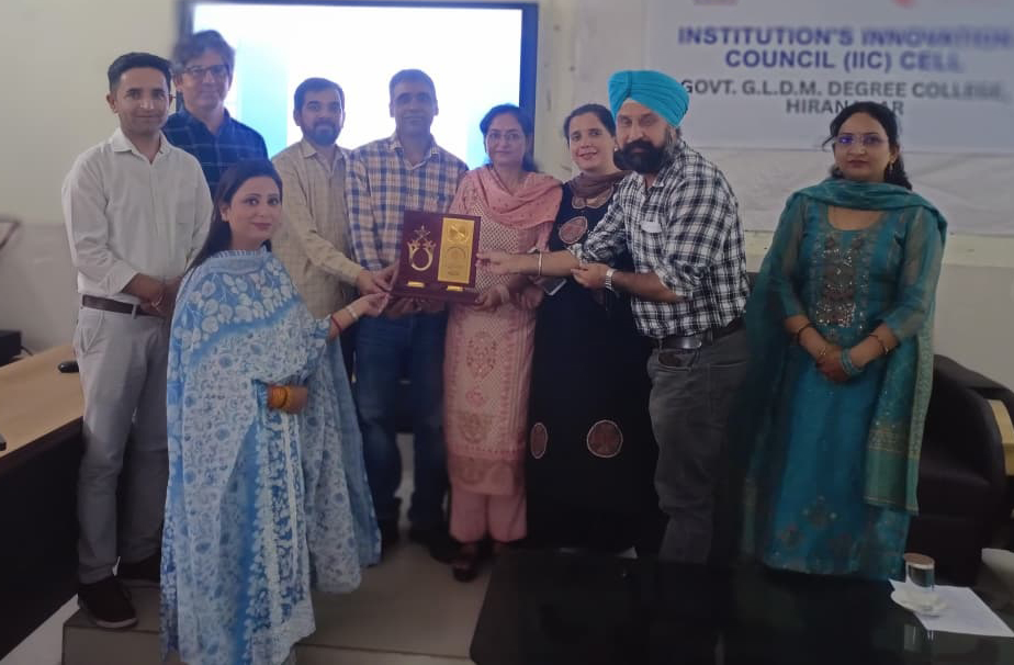 Early Times Report HIRANAGAR, Oct 13: The Institution's Innovation Council (IIC) Cell of Government G.L.D.M. Degree College, Hiranagar organized a seminar on "Intellectual Property Rights (IPR)" on 11th October 2025 under the patronage of Principal Dr. Pragya Khanna. The keynote address and PowerPoint presentation on "Understanding the Basics of Intellectual Property Rights" was delivered by Dr. Yash Paul Khajuria, Assistant Professor, Department of Biotechnology, University of Jammu. Dr. Khajuria elaborated on the various forms of Intellectual Property, including patents, copyrights, trademarks, geographical indications, and industrial designs, highlighting their importance in fostering innovation and protecting creators' rights. The event commenced with a welcome address by Prof. Vijay Kumar, followed by an insightful speech by Prof. Anupma Arora, President of the IIC Committee, who emphasized the role of the Institutional Innovation Council in nurturing creativity and entrepreneurship among students. The seminar was attended by a large number of students and faculty members, who showed keen interest in understanding the concept of Intellectual Property Rights. Among the distinguished faculty members present were Prof. Ganga Sharma, Prof. Amit Kumar Sharma, Prof. Surinder Kumar, Prof. Neeru Sharma, Dr. Nishu, and Prof. Balvinder Kour. The faculty members felicitated the guest speaker with a memento as a token of appreciation for his valuable contribution. The session concluded with a Vote of Thanks presented by Prof. Amit Singh, Coordinator of IPR Activities, who expressed heartfelt gratitude to the resource person, Principal, faculty, students, and IIC team for their cooperation and active participation.
