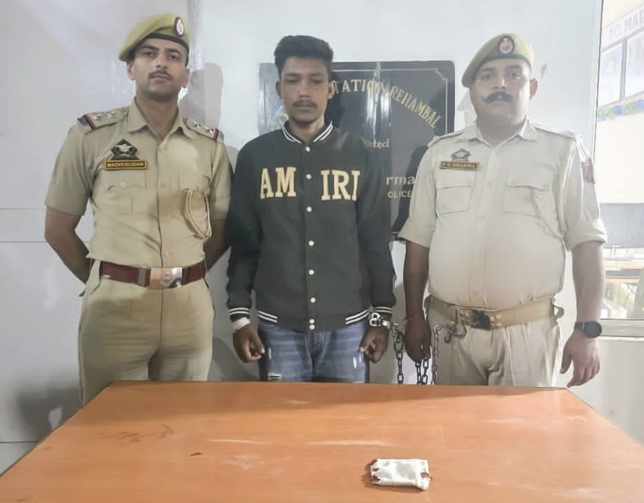 Notorious drug peddler arrested, heroin recovered | | | Early Times Report UDHAMPUR, Oct 13: Continuing its drive against the drug menace, Police party of PS Rehambal during patrolling duty in the Chak area noticed one person coming on foot from Mageni towards Chak Morh. On seeing the police party, the said person tried to hide himself which created suspicion but was swiftly apprehended by the patrolling team. The accused was identified as Chetan S/o Lt. Ashok Kumar R/o Balmiki Colony, Chopra Shop Tehsil & District Udhampur. During his personal search, 6.12 grams of heroin (narcotic substance) along with a polypouch was recovered from his possession. In this regard, Case FIR No. 165/2025 U/S 8/21/22 NDPS Act stands registered at Police Station Rehambal and the investigation has been taken up. |