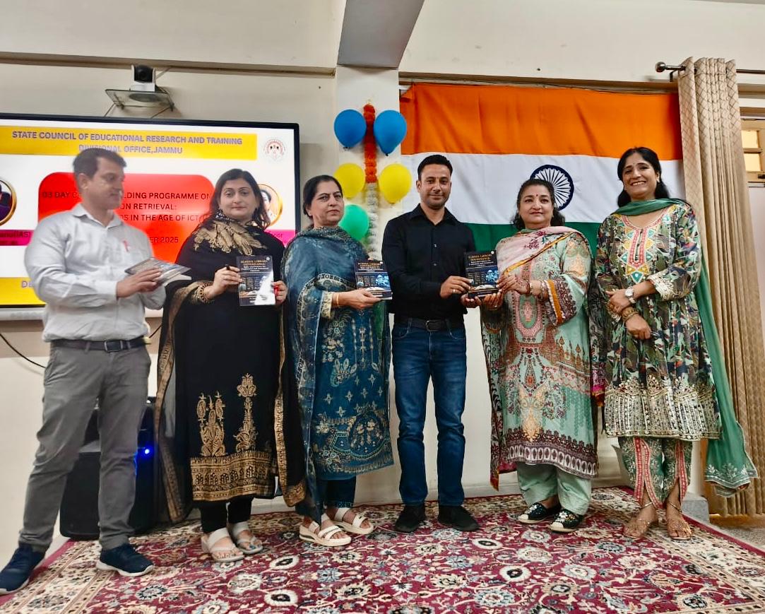 Jammu, Oct15: SCERT J&K Divisional Office Jammu successfully hosted a three day Capacity Building Programme on Information Retrieval : changing trends in the age of ICT from 13 Oct. to 15 Oct.2025 promoting knowledge sharing,innovation and capacity building among library professionals from Jammu Division . The programme was organised by Department of Library and Documentation, Academic Unit I. The event brought together experts from the University of Jammu, Government Degree Colleges, SCERT Jammu and Samagra Shiksha to discuss emerging trends and best practices in library and information management. This CBP aimed to enhance understanding of the changing nature of information retrieval in the digital and ICT-driven environment and to familiarize librarians with modern tools, technologies and digital platforms for efficient access, organization, and dissemination of information. The programme was inaugurated by Dr. Anuradha Seth, Chief Librarian, Government Degree College for Women, Gandhinagar, Jammu. She wholeheartedly applauded this initiative, which promises to enrich participants' expertise and instill confidence in their ability to innovate and respond to evolving trends. Congratulating the organizers, resource persons, and participants, Prof. (Dr.) Sindhu Kapoor, Joint Director SCERT J&K, Divisional Office Jammu emphasised upon fostering a culture of excellence in librarianship, staying ahead of emerging trends and delivering efficient, effective, and ethical information services. Various aspects of library development, information literacy and the integration of technology into educational resources were discussed in the programme.The sessions were deliberated by eminent professionals includingDr. Samita Wadhera, Librarian, Department of Botany, University of Jammu, Dr. Pramod Kumar, Department of Library and Information Science, University of Jammu, Dr. Arun Gupta, Librarian, GDC Chenani, Udhampur, Dr. Sandeep Sharma, GGHSS Mandi, Poonch,Ms. Lakshmi Puri, Teacher Educator, Samagra Shiksha, Jammu,Ms. Manu Vasudeva, Academic Officer, Mr. Bikram Singh, Academic Officer, Dr. Bhuvi, Academic Officer and Ms. Ruchi Mohan, Librarian from SCERT, Jammu. They emphasized the need for continuous professional development and stronger collaboration among educational institutions across the region. A remarkable highlight of the programme was the release of the book titled “School Library Governance: Rules and Policies for Traditional and Automated Libraries,” authored by Dr. Sandeep Sharma, Librarian, GGHSS Mandi Poonch. The book was formally unveiled by the worthy Joint Director, SCERT Jammu Division Prof. (Dr.) Sindhu Kapoor, who appreciated the author’s scholarly contribution to the field of library science. Dr. Sandeep Sharma also delivered an engaging session on the core concepts, objectives, and vision of his book, offering profound insights into modern library governance, policy formulation, and automation practices. The programme was well coordinated by Dr Bhuvi. She was assisted by Ms Ruchi Mohan as Associate Coordinator. Team members namely Bikram Singh, Pratibha Jamwal, Shamim Nazki, Ruksana Gulbadan, Arsh Kour, Rakesh Chobber and Manisha Chun managed the whole programme under the supervision of Sh. Sanjeev Suri, Head, Academic Unit-I and Mtr. Parveen Akhter, Head, Library and Documentation Wing. |