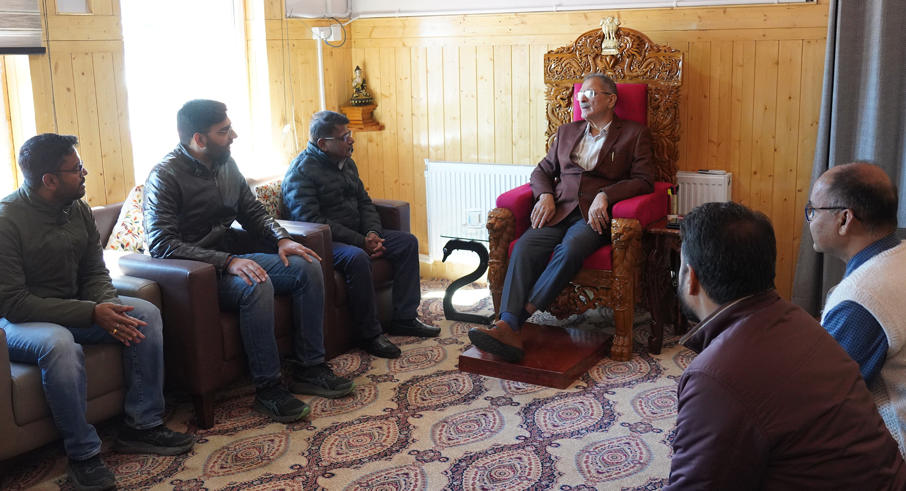 Early Times Report LEH, Oct 16: The Chief Engineer, Central Public Works Department (CPWD), today paid a courtesy visit to the Hon'ble Lieutenant Governor of Ladakh, Shri Kavinder Gupta, at the LG Secretariat, Leh. During the meeting, the Chief Engineer briefed the Lt Governor about the status of ongoing development projects being executed by CPWD across the Union Territory. He gave an overview of the progress in infrastructure development, including public buildings, road connectivity, and housing projects, aimed at strengthening civic facilities and administrative efficiency in Ladakh. The Chief Engineer also apprised the Lt Governor about the introduction of geothermal technology for heating and energy generation in select projects, highlighting its cost-effectiveness and sustainability in Ladakh's climatic conditions. He informed that the adoption of this green technology would significantly reduce energy costs and dependence on conventional fuels. The Lt Governor appreciated CPWD's efforts in implementing modern and environment-friendly technologies. He emphasized the need to incorporate sustainable and energy-efficient technologies like geothermal systems in future projects to make Ladakh a model of green and resilient development. |