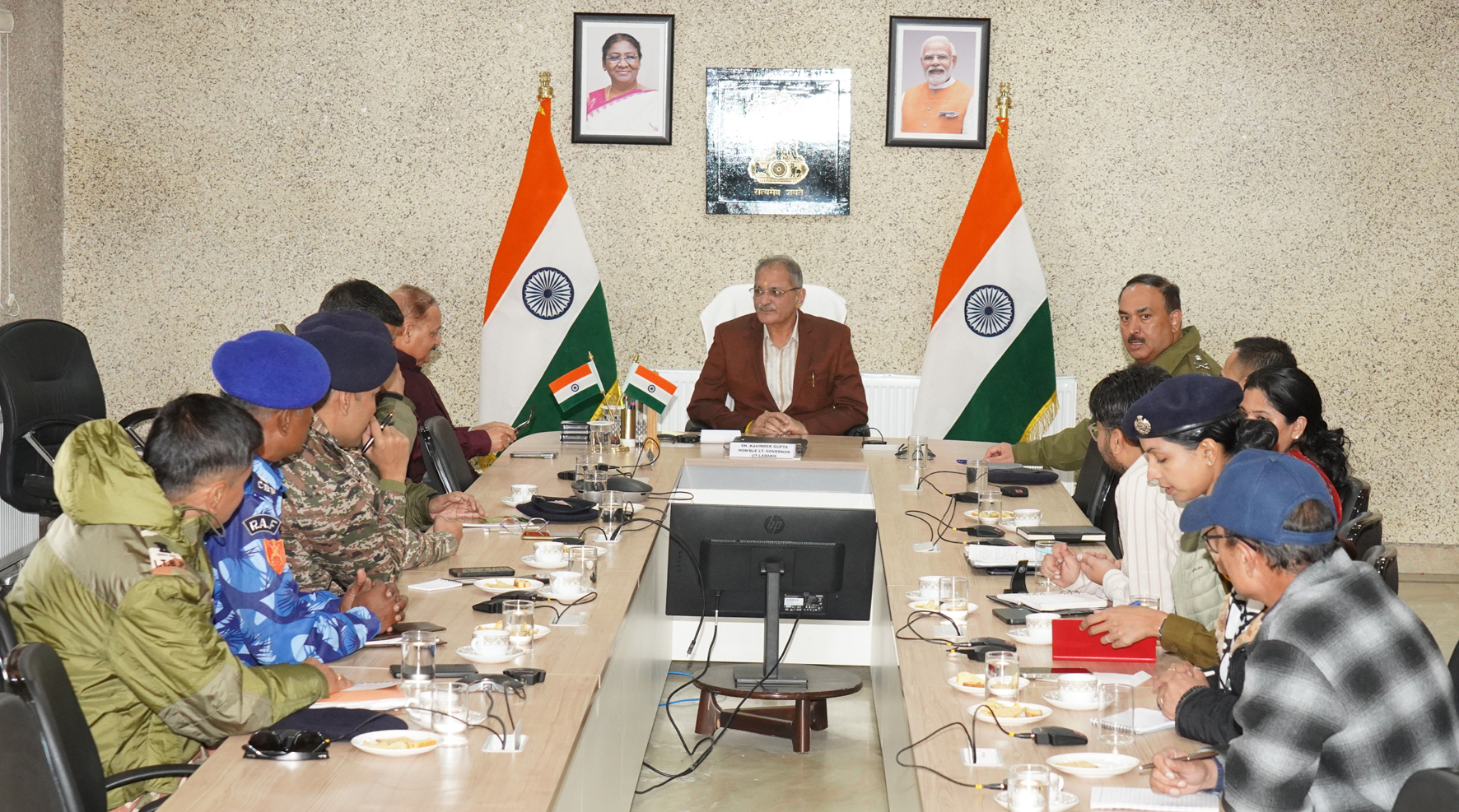 Early Times Report LEH, Oct 16: The Lieutenant Governor of Ladakh, Kavinder Gupta, today chaired a high-level security review meeting at the LG Secretariat, Leh, to assess the overall law and order situation and review security scenario across the Union Territory. In the meeting, Chief Secretary Dr. Pawan Kotwal, Director General of Police Dr. S.D. Singh Jamwal, DIG CRPF P.R. Jambolkar, Deputy Commissioner Leh, Senior Superintendent of Police Leh, CO 79 -Shri Sanjay Kumar, CO Rajat Jain and other senior officials were present. They briefed the Lt Governor on the prevailing situation in the UT, informing that peace and normalcy have been fully restored. They apprised that schools, colleges, public institutions, and government offices are functioning smoothly, while all essential services and public transport are operating seamlessly. The Deputy Commissioner, Leh, informed that all restrictions, including Section 163 of the Bharatiya Nagarik Suraksha Sanhita (BNSS), have been formally lifted, marking a complete return to normalcy across the region. The Lt Governor commended the concerted efforts of the civil and police administration, security agencies, and the people of Ladakh for their exemplary role in maintaining peace, harmony, and stability in the Union Territory. He lauded the collective spirit and cooperation of the people of Ladakh and civil society organisations for their steadfast commitment to peace and social harmony. He reiterated that the lifting of all curbs reflects the deep trust and confidence that citizens repose in the UT Administration.