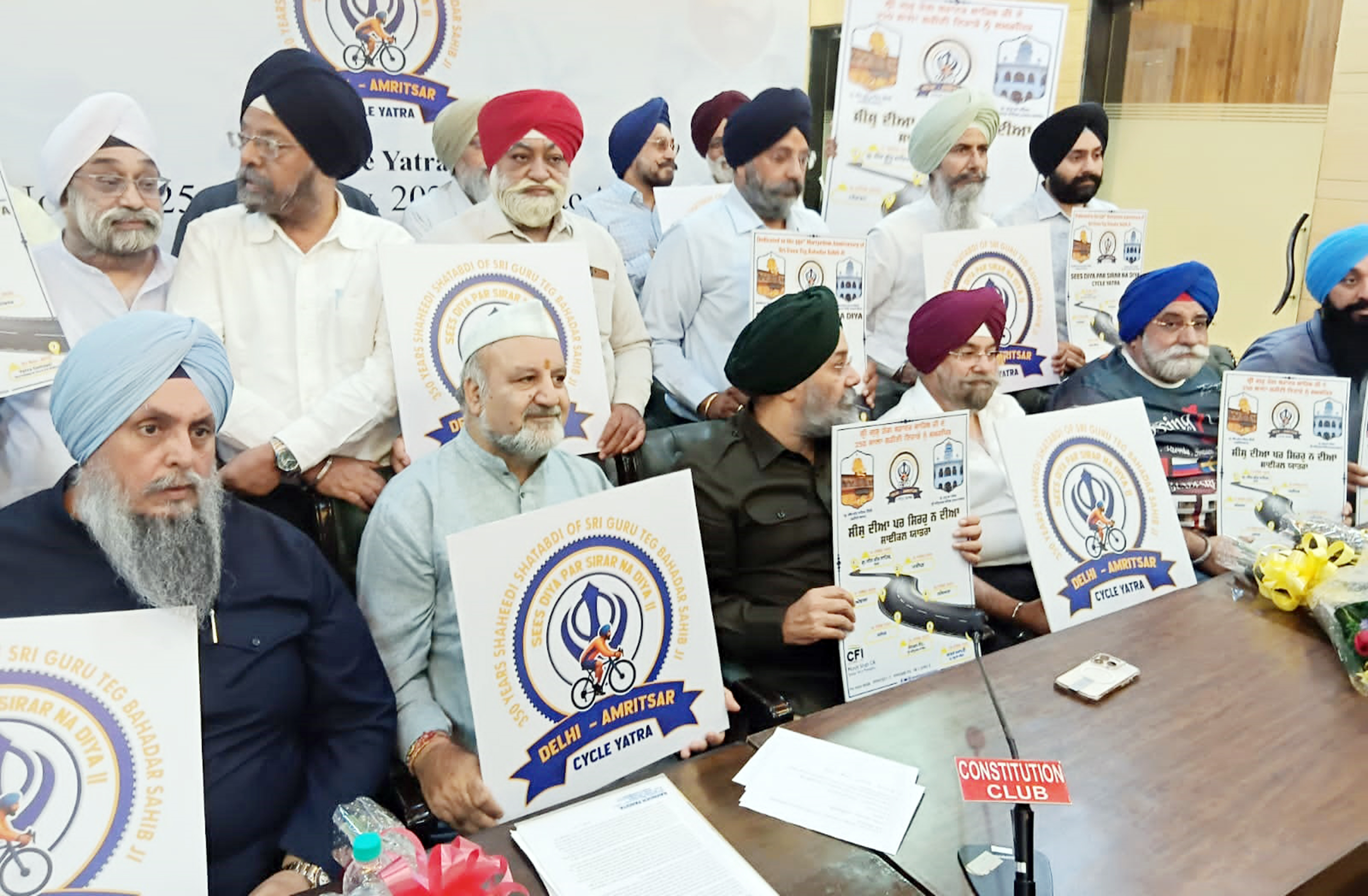 Jammu, Oct 17: ycling federation of India is organizing a religious yatra from 15 November onward to mark the 350th Martyrdom anniversary of Guru Teg Bahadur ji. Kashmiri Pandits will also take part in this event which is a part of martyrdom anniversary being observed this year throughout globe. In a press conference held in Constitution Club New Delhi, Senior Vice President of Cycling federation of India said that this cycle tour will start from Gurudwara sis Ganj in Delhi on 15 Nov and will culminate on 20 Nov at Gurudwara Guru Ka mahal near Amritsar and will raise awareness about the supreme sacrifice of Guru Teg Bahadur ji. Speaking to press, President of All India Kashmiri Samaj Regd.(AIKS) Ravinder Pandita said that We owe a lot to Guru Teg Bahadur ji and in this regard the celebrations were kick started from Guru Teg Bahadur Gurudwara at LoC Teetwal on 1 Sept. This gurudwara was rebuilt and dedicated to Guru Teg Bahadur in 2023 after the same was burnt in 1947 during tribal raids called Pak proxy war. This gurudwara and Sharda temple has been built on the same land where these existed prior to partition at Teelwal, the tip of north India right on LoC. Issuing a whip to its affiliates of Ambala, Ludhiana and Amritsar, AIKS president has asked kashmiri pandits to receive the yatra and be a part of larger celebrations of 350th martyrdom anniversary of Guru Teg Bahadur ji.