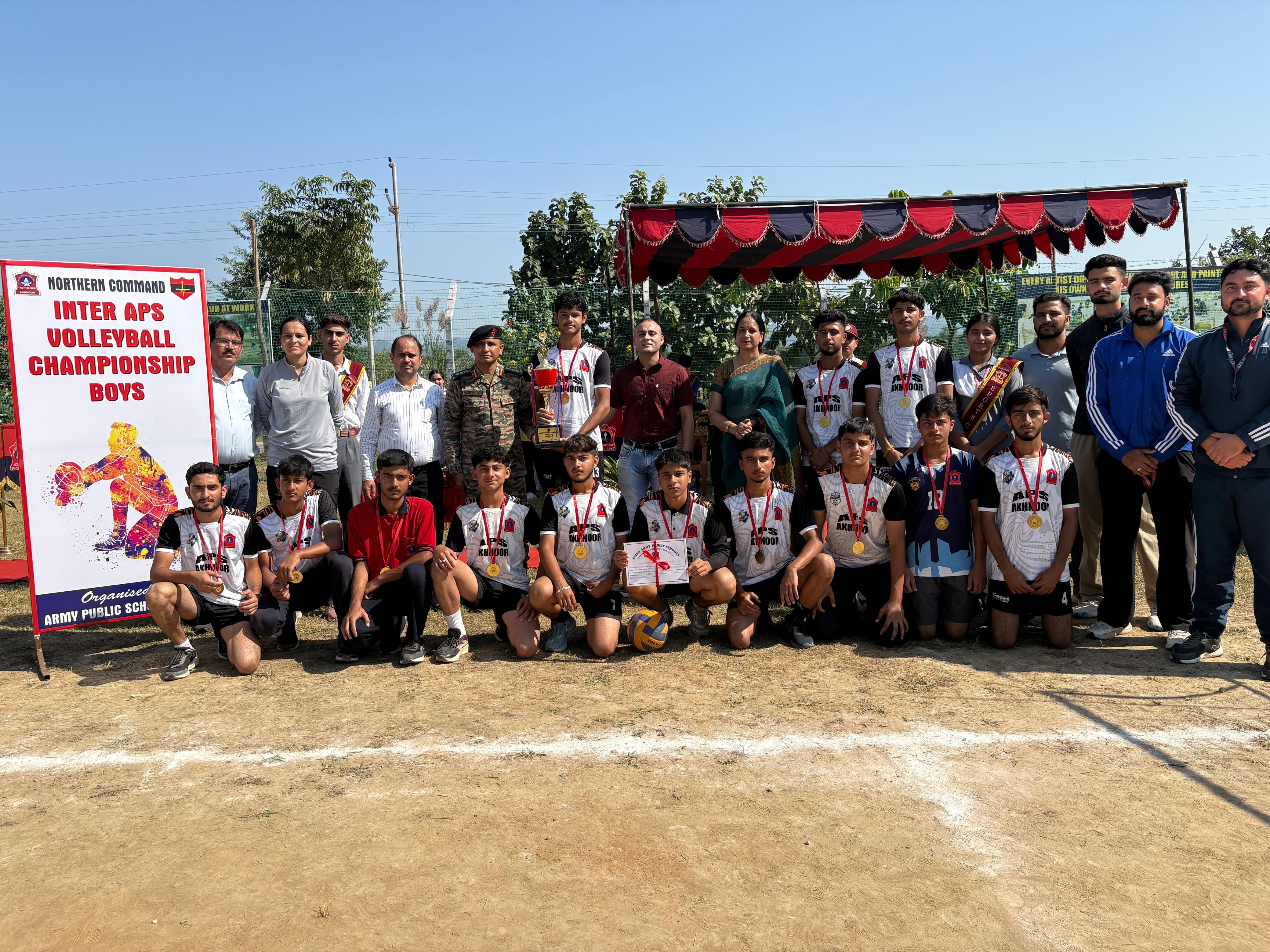 Akhnoor, Oct 18: With exceptional skill and teamwork, the volleyball teams of Army Public School Akhnoor earned top honours in the Northern Command Inter Army Public School Volleyball Championship (Cluster A), held on 17–18 October 2025 on their home court. The two-day event witnessed spirited participation from various Army Public Schools and was marked by competitive matches, enthusiasm and exemplary sportsmanship. The championship featured high-energy contests where players displayed remarkable teamwork, skill and discipline—true reflections of the Army Public School ethos. In the Boys’ category, Army Public School Akhnoor emerged as champions, exhibiting superior coordination, agility and determination. Army Public School Rakhmuthi secured the Runners-up position after an intensely fought final. In the Girls’ category, Army Public School, Udhampur claimed the Winners’ Trophy, while Army Public School Akhnoor finished as Runners-up, displaying admirable grit and consistency. The event concluded with a prize distribution ceremony celebrating the achievements of all participating teams and acknowledging their spirit of fair play and perseverance. Miss Yede Vaishnavi Nitin of APS Udhampur and Master Sahil Manhas of APS Akhnoor were declared ‘Player of the Tournament’ in the girls and boys teams respectively. Mrs Geeta Devi, Principal, Army Public School Akhnoor, congratulated the teams, Mrs Sangita Bhatt, the head coach, support staff and players for their commendable performance, applauding their dedication, teamwork and discipline. She expressed pride in their success and encouraged them to continue excelling in future competitions. |
