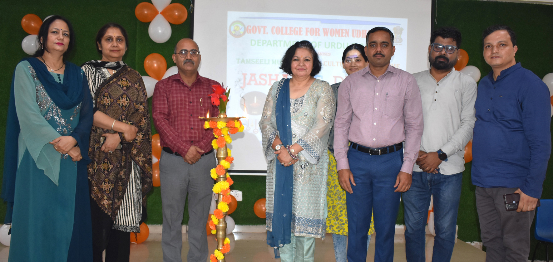 Early Times Report UDHAMPUR, Oct 19: The Department of Urdu and Music of Government College for Women (GCW), Udhampur organized a Tamseeli Mushaira-cum-Cultural Programme on the occasion of Jashan-e-Diwali under the aegis of Internal Quality Assurance Cell (IQAC) in the college premises today. The event was held under the patronage of the Principal of the College, Dr. Nalini Pathania, who graced the occasion as the Chief Guest. The celebration began with the lighting of the traditional lamp followed by a Saraswati Vandana presented by the students of the Department of Music. A colorful cultural programme was presented, featuring Urdu, Sanskrit & Punjabi poetry recitations, ghazals, devotional and traditional dance performances that showcased India's rich cultural diversity. In the Mushaira, students and faculty members presented their Urdu, Sanskrit & Hindi poetry on themes such as Diwali, peace, harmony, and national integration.The prominent performers included Dr. Mool Raj, Prof. Yash Paul, Dr Shahid Iqbal besides budding poets, Sania, Teesha, Sonam Seth, Shaeen Akhter, Asha Thakur, Nagma Chandail, Anam Amina, Pooja Chuhan, Shaheena, Rubia, and Laiba Ashraf. The poetic expressions received warm applause and appriciation from the audience. In the cultural program, devotional, Dogri folk, and Punjabi folk dances were added to the festivities. The energetic performances by students at the festival dedicated to Jashn-e-Diwali were also worth watching. Addressing the gathering, Dr. Pathania, in her inspiring speech, congratulated the Departments of Urdu and Music for organizing such a vibrant and inclusive event. She emphasized that festivals like Diwali symbolize the victory of light over darkness and good over evil, and celebrating them through cultural and literary activities nurtures creativity, unity, and mutual respect among students. She also encouraged students to preserve India's composite culture (Ganga- Jamuni -Tahezeeb) through active participation in such artistic events. She further stated that celebrating Jashan-e-Diwali through art, poetry, and music is a beautiful way to strengthen the spirit of togetherness. The entire event was coordinated under the guidance of Heads of the Departments of Urdu and Music, who extended their gratitude to the Principal for her constant encouragement and support. The proceedings of the programme were conducted by HoD Urdu, Dr. Mool Raj and Tasneem-Ul-Nisa student of Sem 7th, besides formal vote of thanks was presented by Dr. Shahid Iqbal Department of Urdu. As many as 275 students witnessed the occasion. Besides, the event was graced by the presence of Dr. Monika Gupta, Dr. Yash Paul Singh Dr. Shivani Suri Verma, Prof, Swarna Devi, Dr. Ravinder Kumar, Dr. Kamaldeep Kour, Prof. Yash Paul, Dr. Om Parkash, Prof. Pardeep Singh, Dr, Swati Dutt, Dr. Anita Kumari, Dr. Neha Antal, Dr. Madhvi Bhardwaj, Dr. Sushma Choudhary, Prof. Pooja Bharti, Prof. Yash Kumar, Prof. Sandesh Kumar, Prof. Simran Khajuria and other Teaching and Non Teaching staff members. |