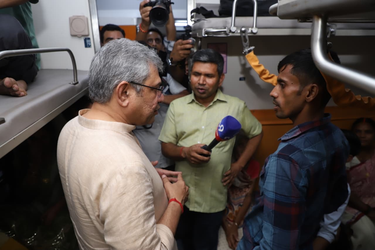 NEW DELHI, Oct 22: Union Minister for Railways, Information and Broadcasting, and Electronics and Information Technology, Ashwini Vaishnaw, conducted a surprise inspection of New Delhi Railway Station this evening, October 21. The Minister inspected the control room on platform No. 1, which monitors the entire station. He interacted directly with passengers on platforms No. 12/13. He also interacted with sleeper class passengers on the Amrit Bharat Express train on platform No. 16 to learn about their experiences and gather feedback. Following this, he inspected Yatri Suvidha Kendra, where he gathered feedback from passengers on the facilities provided by the Railways. Speaking to the media, Vaishnaw said, "Indian Railways has made extensive arrangements to ensure that passengers do not face any inconvenience despite the heavy rush. 1.2 million railway employees are engaged in serving passengers day and night." Chairman and CEO, Railway Board, Shri Satish Kumar, General Manager, Northern Railway, Shri Ashok Kumar Verma and other senior officers were also present during the inspection. |