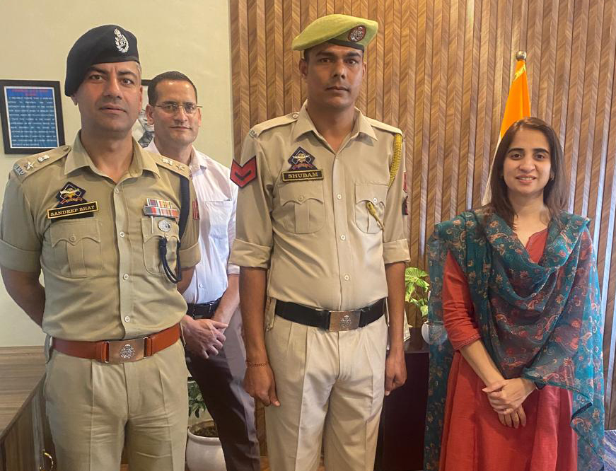 Early Times Report UDHAMPUR, Oct 22: In a solemn ceremony held at the Range Police HQ Udhampur, Deputy Inspector General of Police, Udhampur-Reasi Range, Sarah Rizvi IPS, pinned ranks on the newly promoted officials of RPHQ Udhampur. On this occasion, newly promoted Head Constables and Sg.Constables were formally adorned with their new ranks. The event was attended by Addl. SP Udhampur, Staff officer RPHQ Udhampur, Dy.SP HQ Udhampur, Dy.SP DAR Udhampur and other staff members of RPHQ Udhampur, making the ceremony both official and memorable. Congratulating the officials, the DIG expressed her appreciation for their dedication and service. She emphasized that promotions not only enhance the stature of officials within the department but also bring along greater responsibilities and challenges. She urged the officials to carry out their new roles with passion, integrity and unwavering commitment towards public service. |