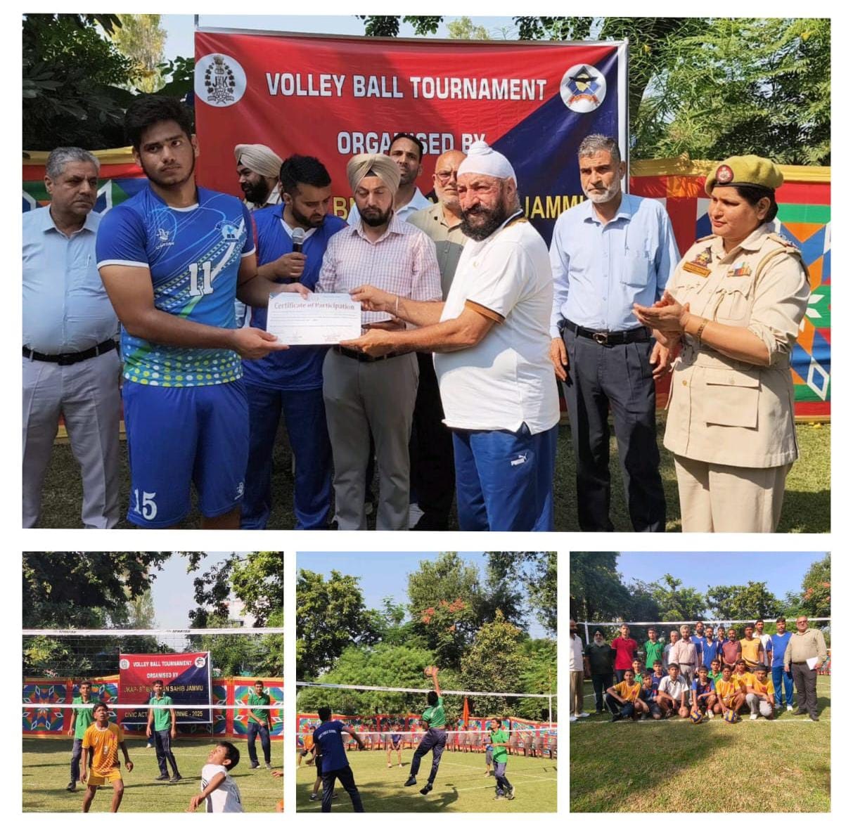 Jammu, Oct 25: A volleyball tournament under Civic Action Programme-2025-26 organized by JKAP-8th Bn was formally kicked-off by Commandant JKAP 8th Bn Miran Sahib Jammu on 24.10.2025. On 25.10.2025, the matches were played between Army Public School Miran Sahib Jammu Vs Govt. Boys High School Kotli Shah Doula and also between JK Public School Kunjwani Vs Mother India Secondary School R.S. Pura. The Chief organizer of the tournament (Commandant JKAP-8th Bn) while addressing the participants highlighted the role of Jammu and Kashmir Police in developing the cardio bonding and bridging the gap between Police and Public. He emphasized the role of sports in character building and for keeping the youth away from social evils. Sh. Suram Singh, JKPS (SSP) Commandant JKAP-8th Bn encouraged the participants to actively participate in such constructive activities and assured that the Police Department will continue to organize similar events in future too, under Civic Action Programme. Today’s matches were also witnessed by a huge gathering including the staff members of the teams as well as other respectable personalities and they appreciated the efforts of JKAP 8th Battalion for providing a platform to engage youth through sports. The programme was conducted in a cordial and disciplined manner, reflecting the spirit of unity and cooperation between police and public. At the end the players were awarded individual certificates by Sh. Bhupinder Singh-DySP JKAP-8th Bn. The matches of the tournament will go ahead on regular basis and will culminate in the 1st week of November-2025. The said tournament is being held both for boys as well as for the girls. The other GOs’ of the Battalion also played their roles to make the said tournament successful.