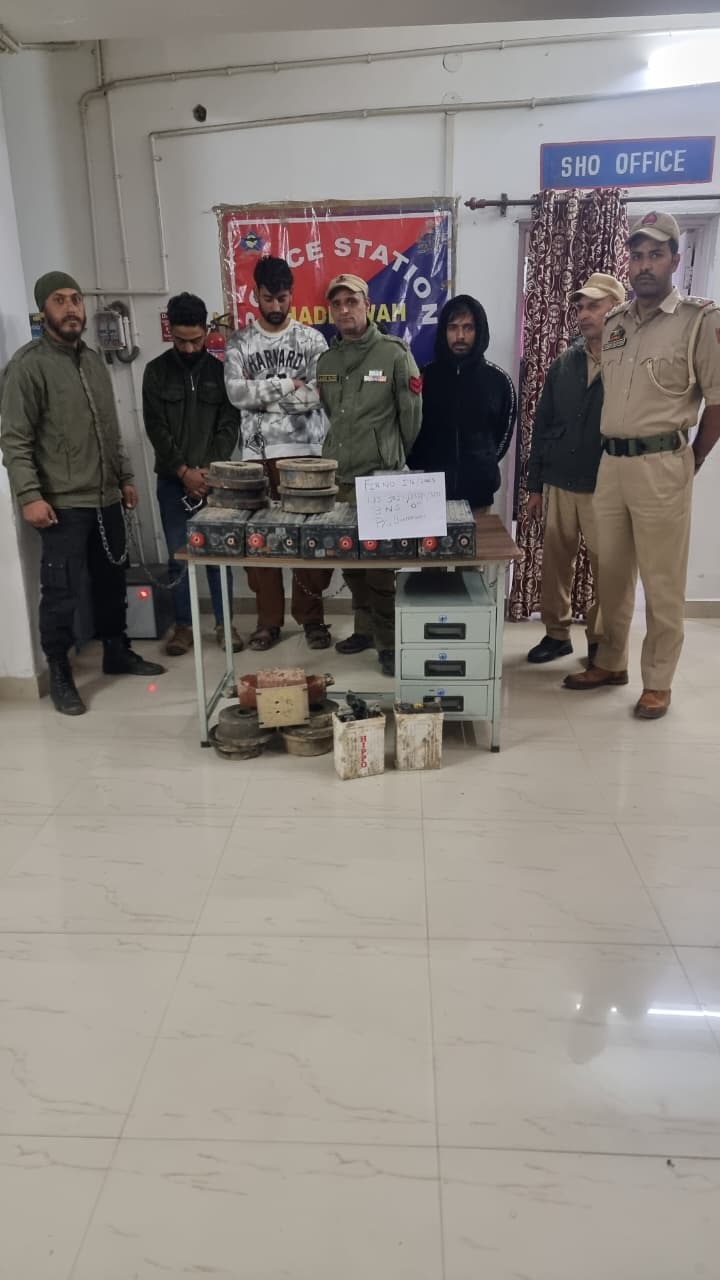 Doda, Oct 24: Doda Police have successfully solved a theft case within 24 hours and recovered stolen property worth approximately Rs 50,000. In an official statement, Doda Police stated that on 23-10-2025, a complaint was received regarding the theft of several batteries and iron materials from a BSNL Tower located at Domail, Bhaderwah. Accordingly, FIR No. 146/2025 under Section 303(2) BNS was registered at Police Station Bhaderwah, and investigation was set into motion. During the course of investigation, a police team from PS Bhaderwah rounded up several suspects. Based on specific leads, three individuals were identified and subjected to sustained questioning: 1. Imran Ahmed, S/O Imtiyaz, R/O Amiranagar, Bhaderwah 2. Mohd Saqib, S/O Azhar Ali, R/O Udarna 3. Mohd Asif, S/O Mohd Alyas, R/O Sarna, Bhaderwah During interrogation, all the above-named suspects confessed to their involvement in the commission of the crime. Upon their disclosure, six stolen tower batteries and other iron materials worth approximately Rs 50,000 were recovered. The prompt and effective action by Doda Police, particularly the team of Police Station Bhaderwah, has been widely appreciated by the general public for solving the case in record time and recovering the stolen property. Doda Police reaffirm their commitment to eradicate crime and ensure public safety across the district.
