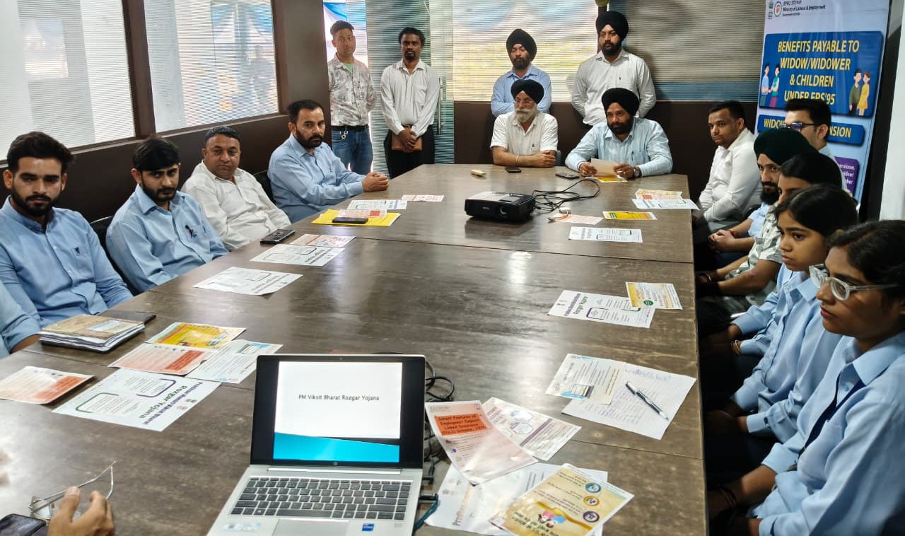 Early Times Report JAMMU, Oct 27: The Employees' Provident Fund Organisation (EPFO) today successfully conducted its flagship outreach initiative, Nidhi Aapke Nikat 2.0, at Peaks Auto, Kaluchak, Jammu. The event, led by Reg. PF Commissioner-II, Sh. Naresh Kumar Yadav, aimed to extensively educate stakeholders on various EPFO services, schemes, and recent initiatives. Enforcement Officer Sh. Balkrishan, accompanied with the team as District Nodal Officer, aimed to educate employers, employees, and other stakeholders about various EPFO schemes. The event was held at Peaks Auto, Kaluchak, Jammu, and saw participation from over 35 employers and employees. The programme centered around outlining the objectives, key benefits, and implementation strategy of the Pradhan Mantri Viksit Bharat Rozgar Yojana and improving member services with special emphasis on processes such as Joint Declaration, KYC Updation, UAN Updation and bank account details. Highlights of the programme included: - A deep dive into the structure and purpose of the Pradhan Mantri Viksit Bharat Rozgar Yojana. - Benefits for both employers and employees under the scheme. - Operational procedures and compliance framework. - The vital role of employers in fostering formal employment and ensuring social security coverage. - UAN Activation and Member Services Shri Balkrishan briefed the gathering on the scale and objectives of the scheme. He informed that the scheme has a substantial outlay of ?1 lakh crore, aiming to generate 3.5 crore employment opportunities across the country. Key representatives Sh. Jarnail Singh, Executive Director, Sh. Vikramjeet Singh, GM, Sh. Ravinder Singh, HR, and Sh. Sujeet Patkar, Account Head, were present in the program. Additionally, queries from employees, employers, and company representatives were addressed by the District Nodal Officer. The event witnessed enthusiastic participation from various sectors, reinforcing awareness and implementation of PMVBRY and EPFO schemes in Jammu Division. |