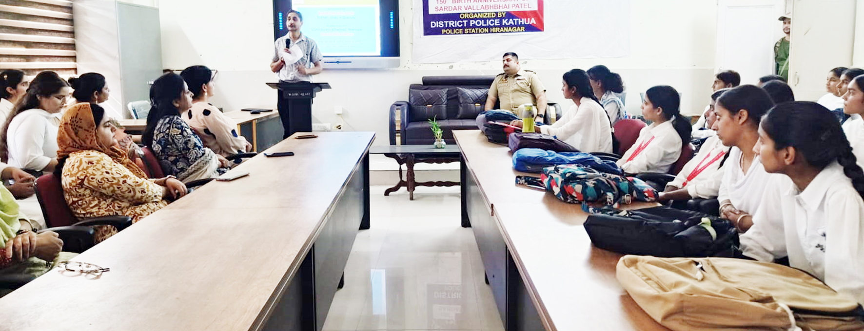 Early Times Report JAMMU, Oct 28: Government GLDM Degree College, Hiranagar, in collaboration with the District Police Kathua, organized a Symposium on the Life and Legacy of Sardar Vallabhbhai Patel to commemorate his 150th Birth Anniversary. The event was held under the able guidance of Dr. Pragya Khanna, Principal of the College, with the active support of SHO Hiranagar, Mr. Ashish Sharma, and the initiative of Prof. Rakesh Sharma, NSS Advisory Member, and Prof. Shapia Shameem, NSS Programme Officer, along with the concerted efforts of other faculty members. The theme of the symposium, "Rashtriya Ekta - Unity in Diversity," reflected the spirit of national integration championed by Sardar Patel. The programme commenced with a welcome address, followed by an inspiring speech by the Principal, Dr. Pragya Khanna, who emphasized the relevance of unity and integrity in nation-building. Around 110 students participated in the event, with 12 student speakers eloquently expressing their views on Sardar Patel's contributions to the unification of India and his enduring legacy as the "Iron Man of India." In his concluding address, SHO Hiranagar, Mr. Ashish Sharma, highlighted the importance of Rashtriya Ekta in maintaining peace and social harmony. The event successfully fostered a sense of patriotism and unity among the students, resonating with the ideals of Sardar Vallabhbhai Patel. |