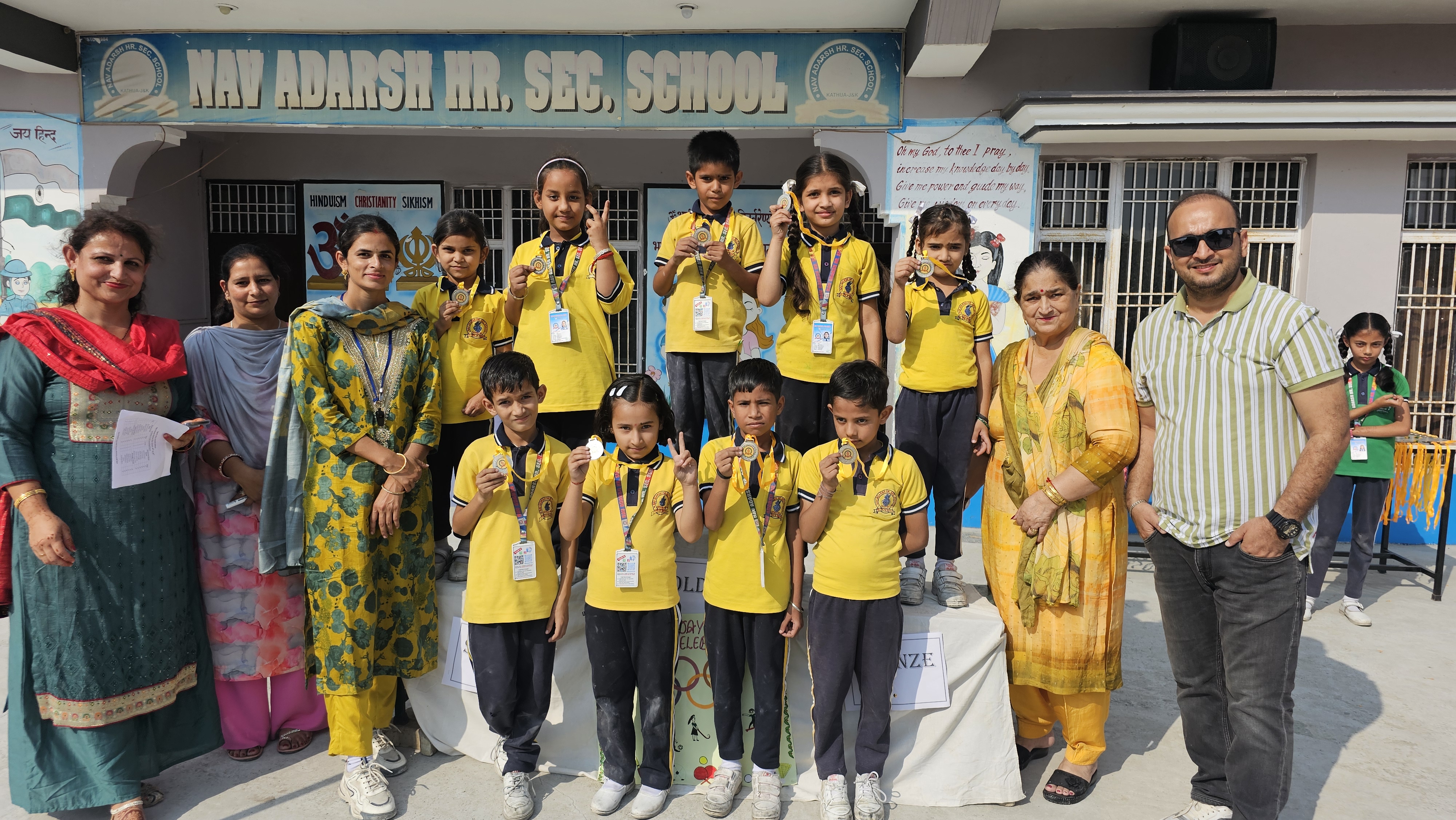 Jammu, Oct 29: Nav Adarsh Hr. Sec. School, Kathua, organized its Inter-House Annual Sports Meet with great enthusiasm and participation from students. The event was conducted in two stages — for Pre-Primary and Primary classes, featuring a variety of fun-filled games that aimed to enhance sportsmanship, team spirit and both mental and physical alertness among the young learners. Students participated in activities like Cone and Ball Race, Ball Pass Game, Relay Race, Zig-Zag and Ring Pass, Balance Activity and the ever-exciting Musical Chair Game. The ground was filled with cheer and encouragement as students displayed high energy and team coordination. The event was graced by Mrs. Lalita Katal, Chairperson of the School, as the Chief Guest, who motivated the students with her encouraging words. Principal Mr. Riti Prakash Singh appreciated the efforts of all participants and congratulated the staff members for the smooth and successful conduct of the event. Winners were felicitated with medals for their outstanding performances. The event was efficiently coordinated by Mrs. Toshi, Sports Incharge, whose dedicated planning ensured a day full of joy, learning and sporting spirit.
