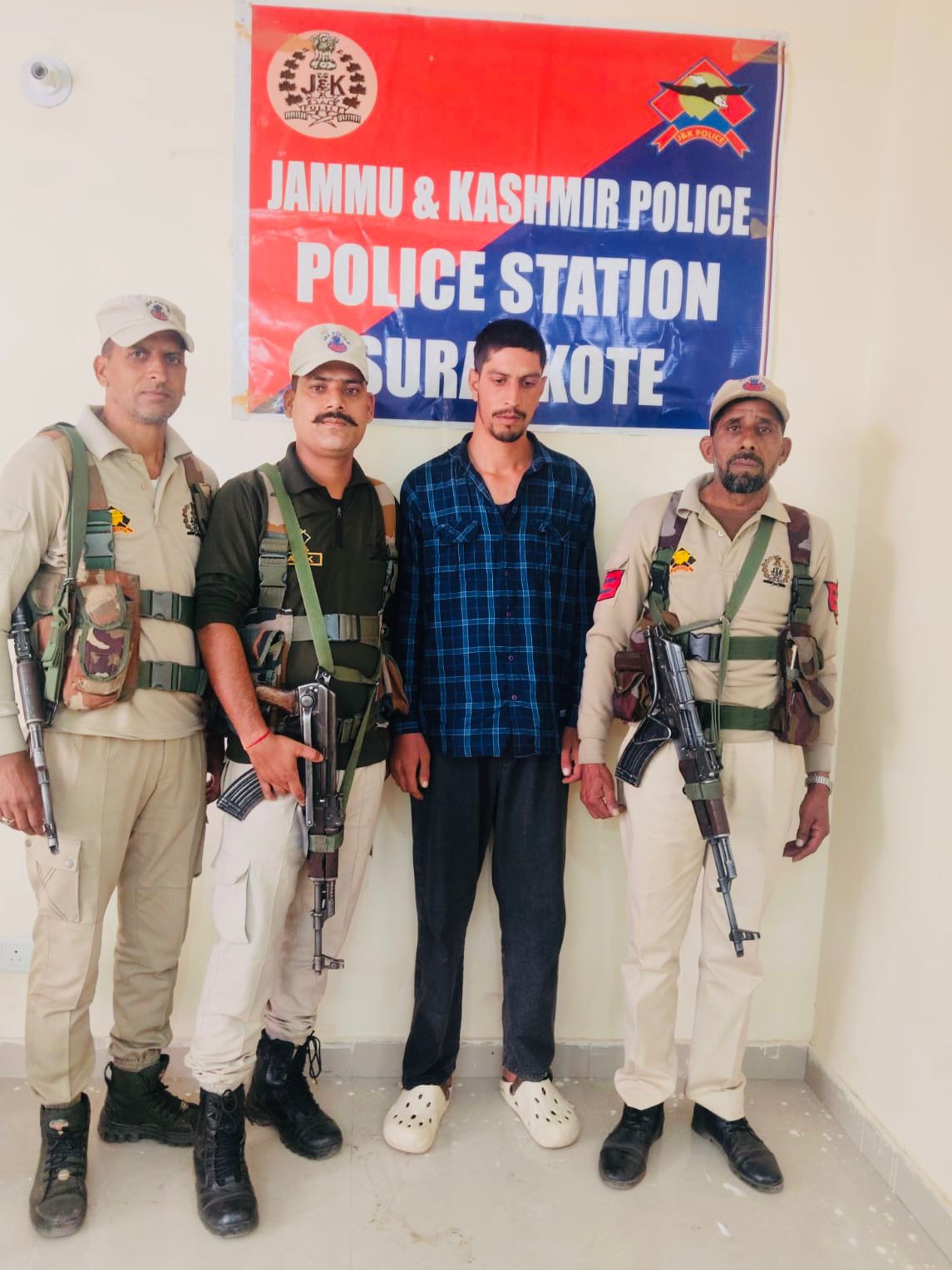 Poonch, Oct 30: In a continued drive against the menace of drug trafficking, District Police Poonch achieved a major success today when Police Station Surankote apprehended a drug peddler and recovered a consignment of Chitta (heroin-like substance) from his possession. Acting on specific information, a special naka was laid at Mirza Morh by the police team. During checking and frisking, one person identified as Aejaz Ahmed, son of Abdul Aziz, resident of Mohra Bachie, was intercepted. On his personal search, 9.5 grams of Chitta was recovered from his possession. In this regard, a case FIR No. 249/2025 under sections 8/20/21 of the NDPS Act has been registered at Police Station Surankote, and further investigation is underway to establish the forward and backward linkages of the accused. District Police Poonch is committed to maintaining its strong stance against drug smuggling and its distribution network in the region, reaffirming its resolve to make the district drug-free. |