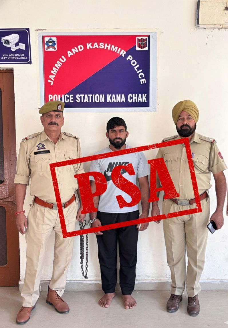 Jammu, Nov 1: Continuing its firm action against elements disturbing public order, Jammu Police, under the leadership of SSP Jammu, Sh.Joginder Singh,JKPS, has tightened the noose against Bovine smugglers. Kanachak Police have apprehended one such Bovine smuggler and booked him under the Jammu and Kashmir Public SafetAct (PSA). During the current year, 01 PSA and 01 PIT NDPS warrants has already been executed against bovine smuggler and drug peddler in subdivision,Domana, reflecting the commitment of Jammu Police towards maintaining peace and public order in the area. This is the 2nd PSA detention in Sub-Division Domana this year after Shamma Detention. Details of the PSA Detenue: Reham Ali S/O Mirza R/O Harsha Tokadian Teh.Marh. The accused was found repeatedly involved in bovine smuggling and multiple FIRs were registered against him for such offences. The PSA warrant was executed by PSI Sohail khan of Police Station Kanachak,under the close supervision of SHO P/S Kanachak and SDPO Domana, and overall supervision of SP Rural Jammu. The support and coordination extended by the District Administration in this regard have been exemplary.The detenue was lodged in District Jail, Poonch.