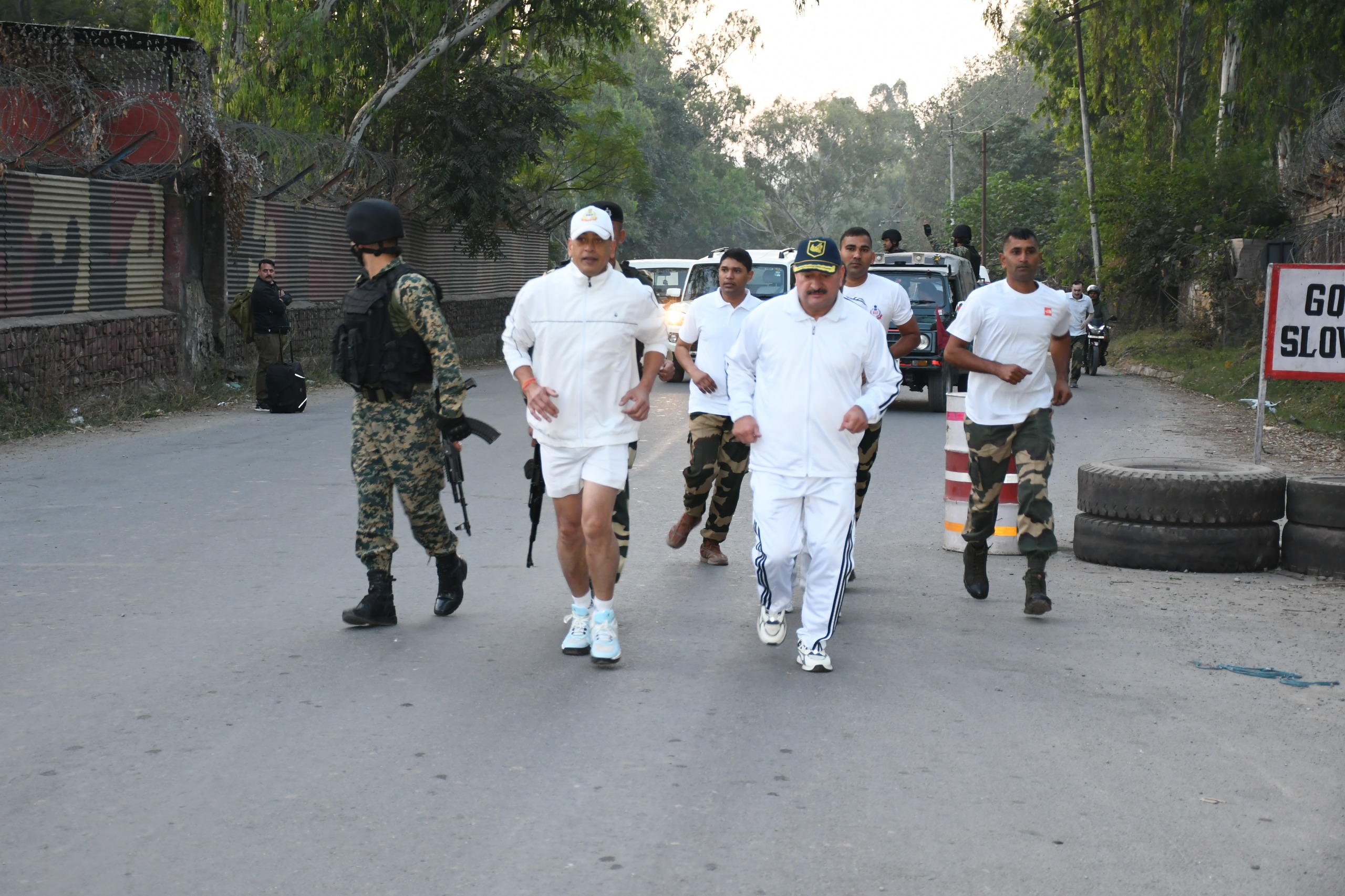 Rajouri, Nov 1: In a spirited initiative to encourage health and unity, the Sector Headquarters Rajouri (SHQ RJR) in association with 61 BN BSF organized a 5 KM Pre-Marathon Run from BSF Camp Rajouri to 150 GH on the National Highway. The event was flagged off by Sh. C.M.S. Rawat, DIG Sector HQ Rajouri, under tight security arrangements. A total of 156 BSF personnel, including senior officers, and 20 civilians took part in the run, held as a prelude to the upcoming Jammu Marathon. The event aimed to inspire fitness, teamwork, and community engagement. Addressing the participants, DIG Rawat praised their enthusiasm and highlighted the importance of maintaining physical and mental fitness. He encouraged everyone to actively take part in the Jammu Marathon. The event concluded with DIG Rawat honoring the top three runners, appreciating their effort and sportsmanship. |