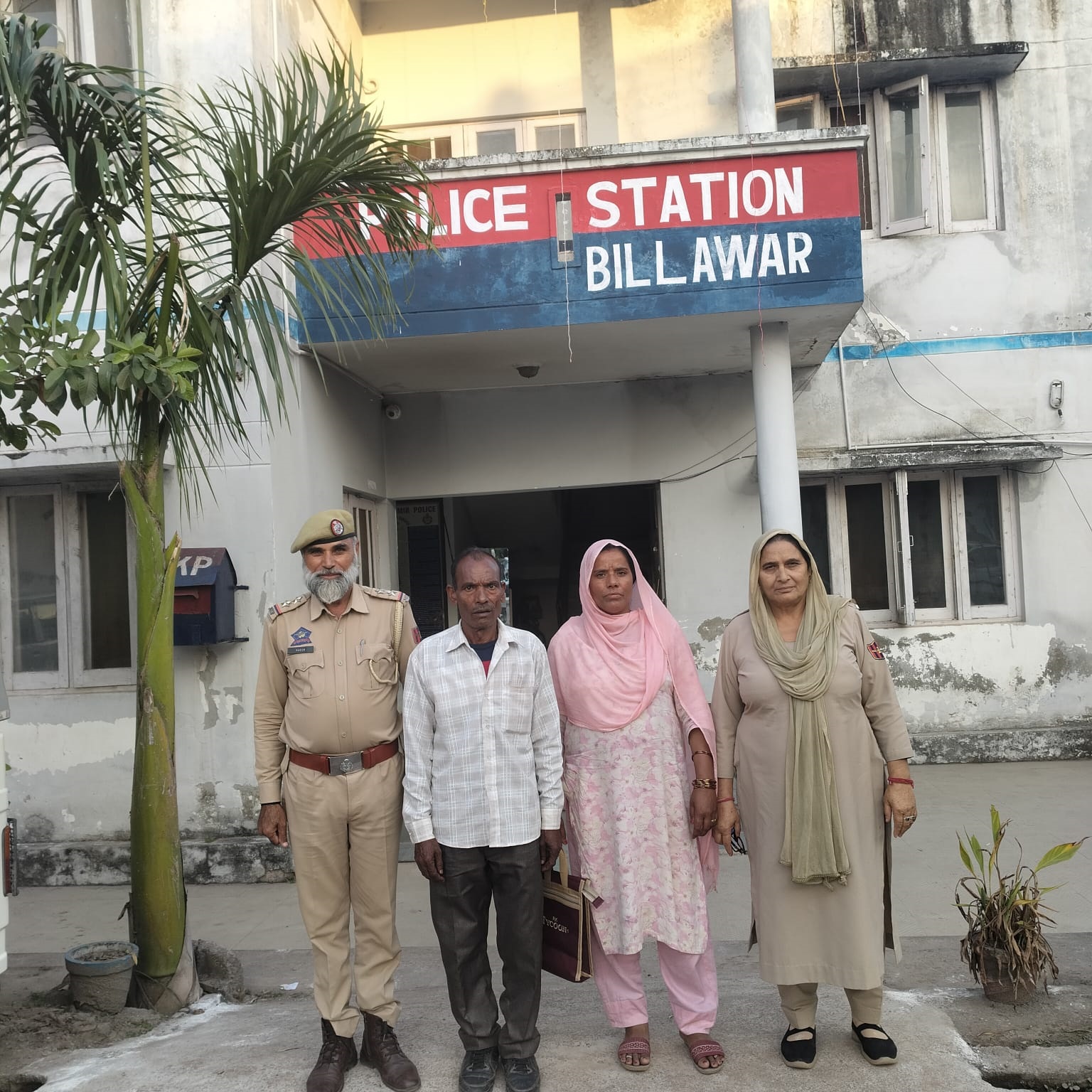 Kathua, Nov 4: J&K Police Kathua under the overall supervision of SSP Kathua Ms. Mohita Sharma IPS traced out one missing lady and reunited her with family members in the jurisdictional area of PS Billawar. On 16-10-2025 one person namely Mohinder Kumar S/O Nanku R/O Dadwara Tehsil Billawar District Kathua came at this P/S Billawar and lodged a written complaint regarding missing of his wife namely Mamta Devi Age- 47 years W/O Mohinder Kumar R/O Dadwara Tehsil Billawar. On receiving a complaint a missing report was entered at this P/S Billawar vide GD No.15 dated 16-10-2025 and a team of P/S Billawar led by Insp. Zaheer Mushtaq SHO PS Billawar under the guidance of SDPO Billawar Sh. Neeraj Padyar searched various places and checked CCTV camera installed in the area and with the help of technical assistance along with timely human intervention , recovered the missing lady from Jammu .After completing all legal formalities the said missing lady handed over to her legal heirs.
