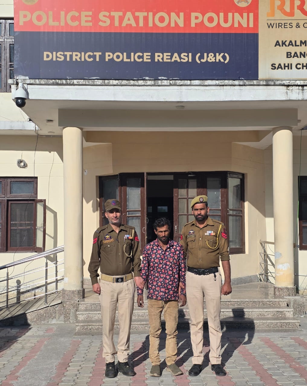 Reasi, Nov 12: Continuing its sustained drive against absconders and proclaimed offenders, Reasi Police achieved a major success today by apprehending one absconder namely Zaheer Abbas S/O Lal Din R/O Gursai, Tehsil Mendhar, District Poonch, who had been evading arrest for the last four years. The said accused had been declared absconder under Section 299 CrPC (now Section 335 BNSS) in case FIR No. 48/2018 U/S 379 RPC and 49/2018 U/S 379 RPC of Police Station Pouni. The Hon’ble Court of Munsiff JMIC Reasi had issued a warrant against him on 23-04-2022 after the challans of the said cases were produced in his absence. The accused had deliberately avoided his arrest despite repeated efforts by police. Acting on specific information, a dedicated team of Police Station Pouni apprehended the absconder today. He will be produced before the Hon’ble Court for further legal proceedings. District Police Reasi, under the supervision of SSP Reasi Sh. Paramvir Singh, JKPS, continues its drive to trace and apprehend absconders to uphold the rule of law and ensure timely justice.